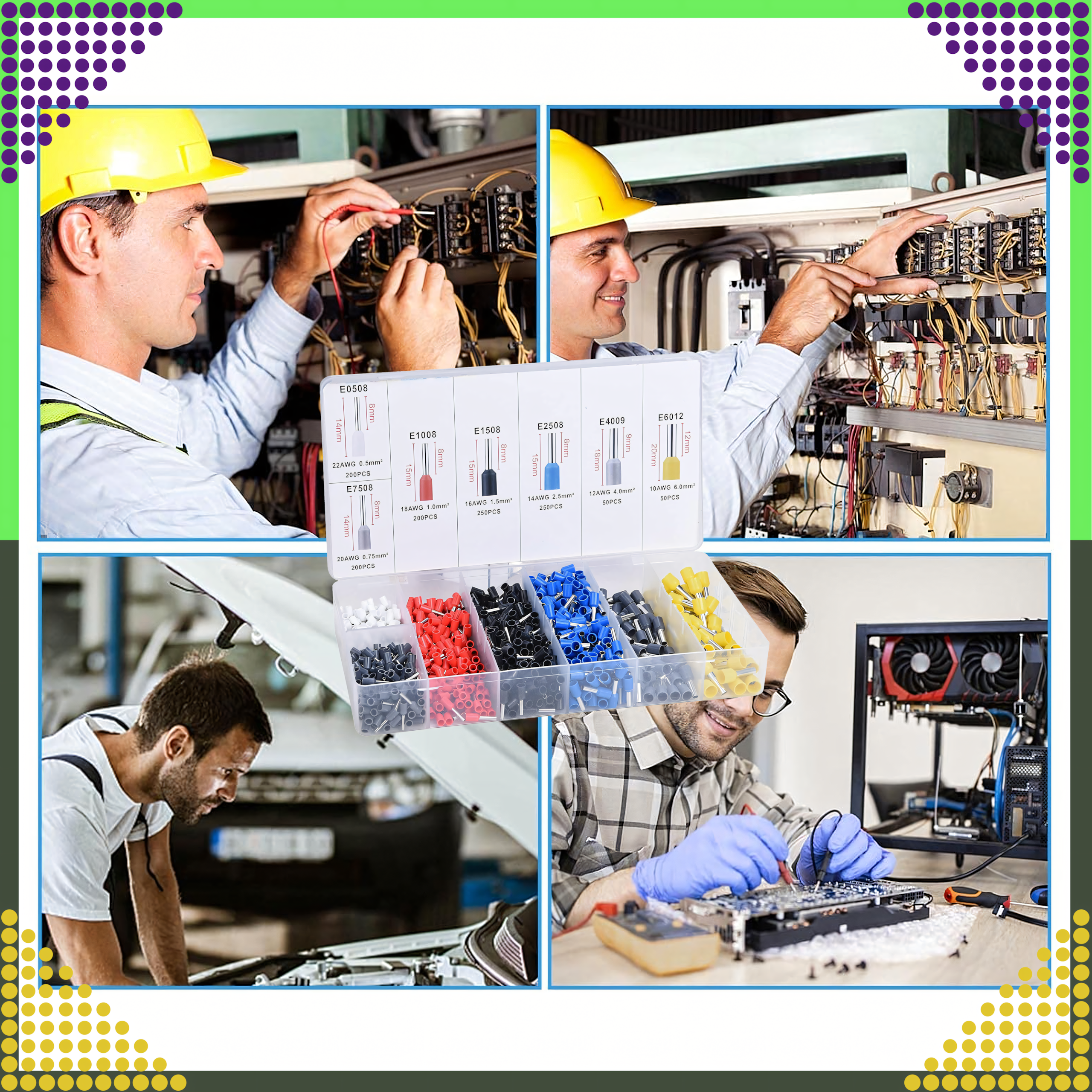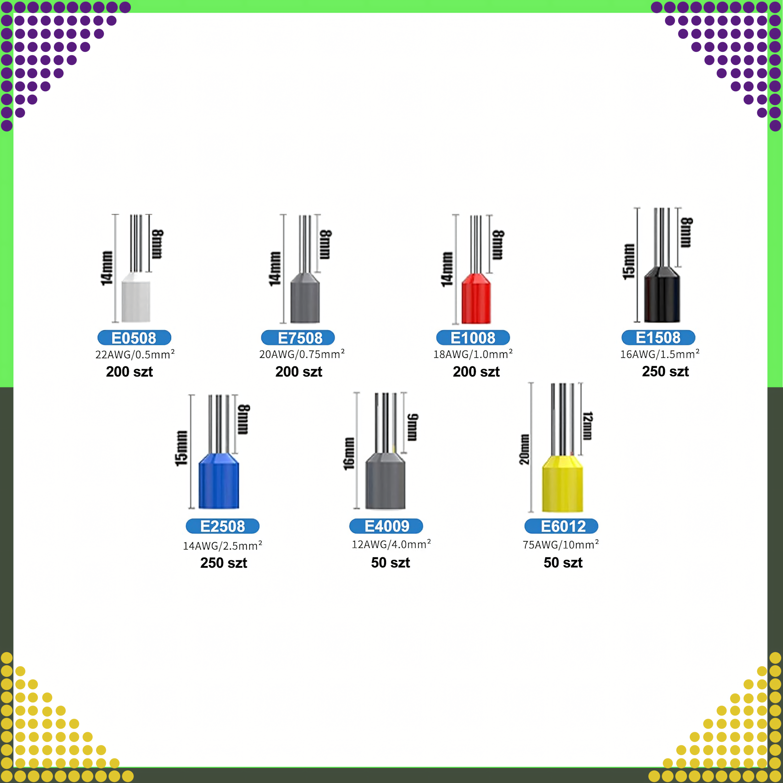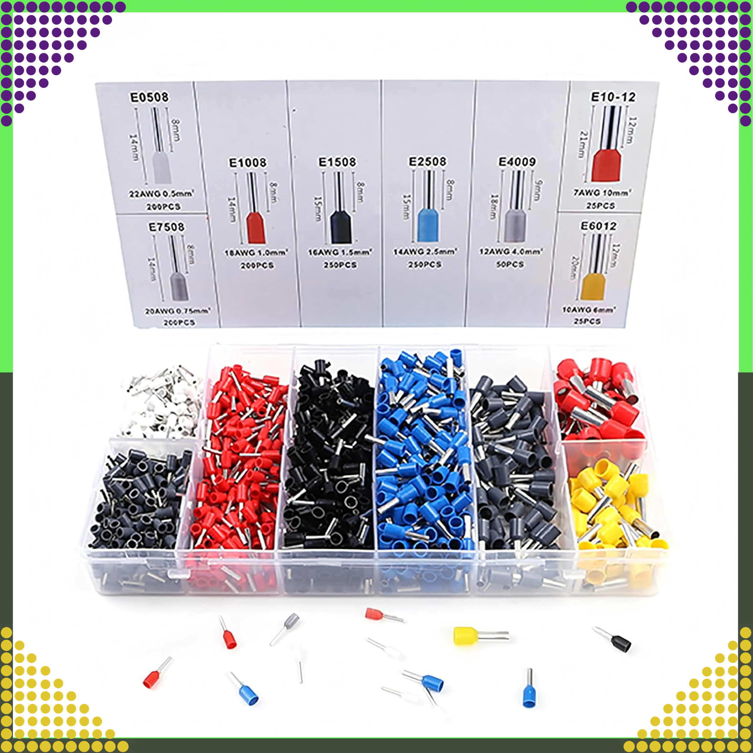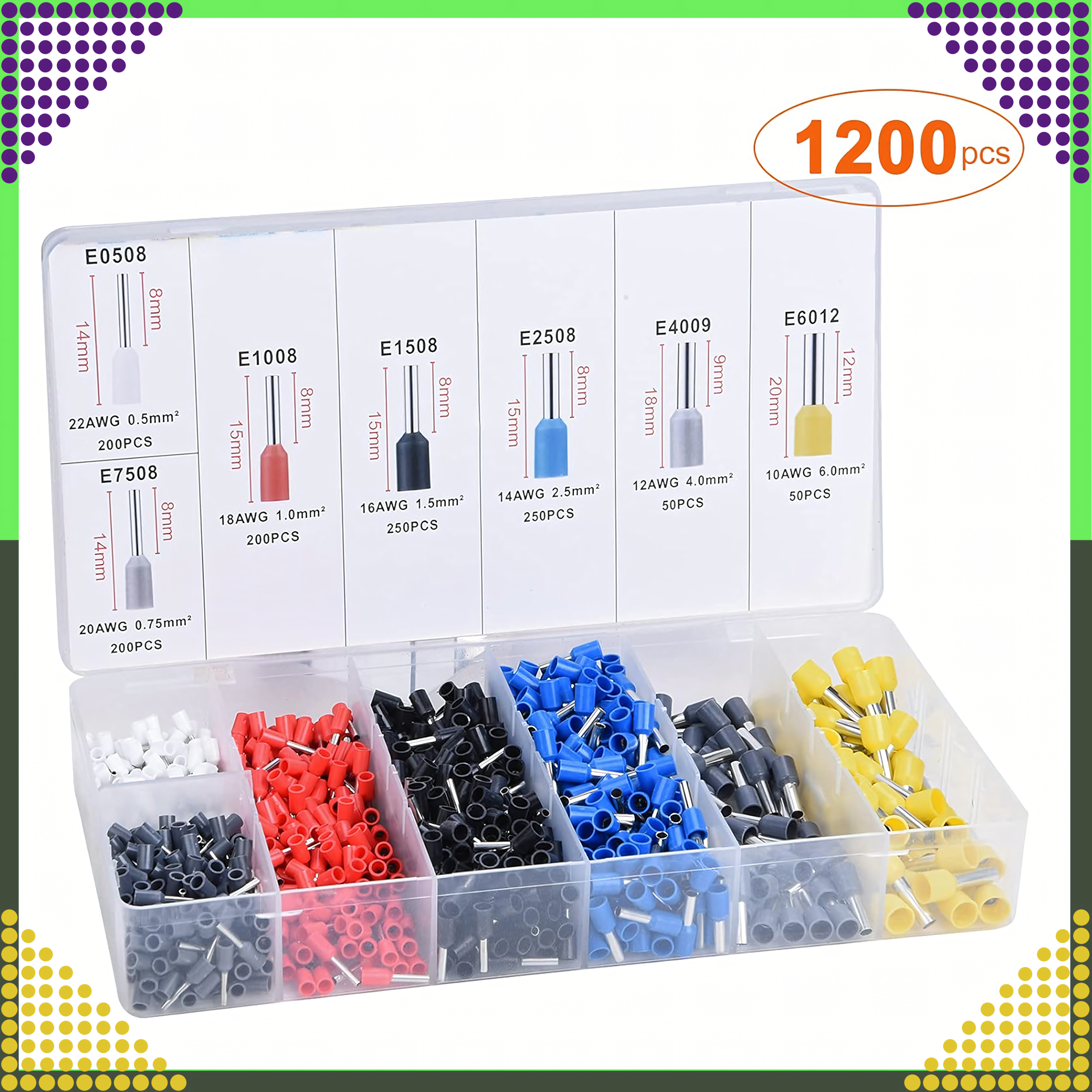 ⭐️ ZESTAW TULEJEK IZOLOWANYCH DO KABLI 1200 szt 0.5 – 6.0 cm3 ⭐️