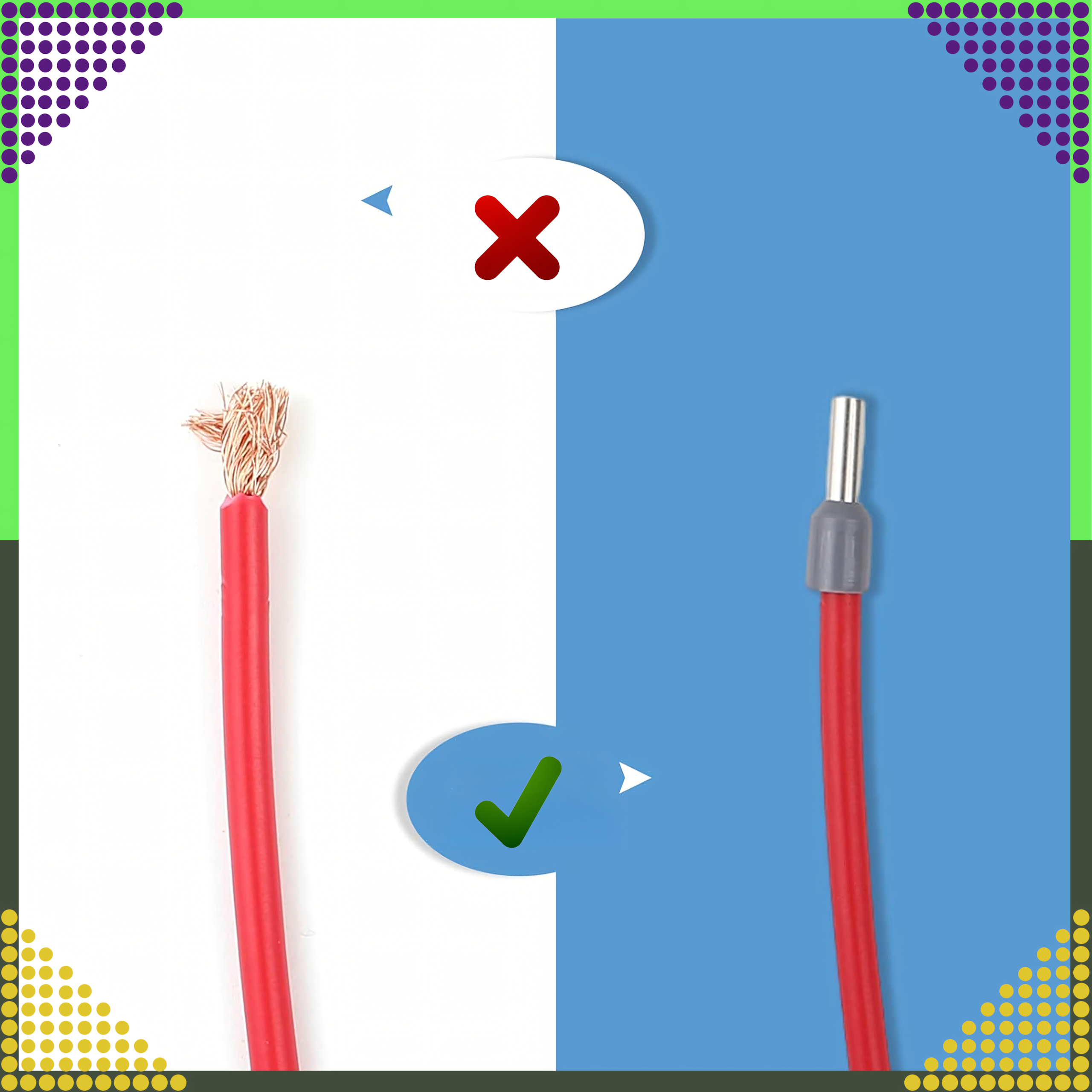 ✔️ Zabezpieczenia końcówek przewodów przed uszkodzeniami mechanicznymi.