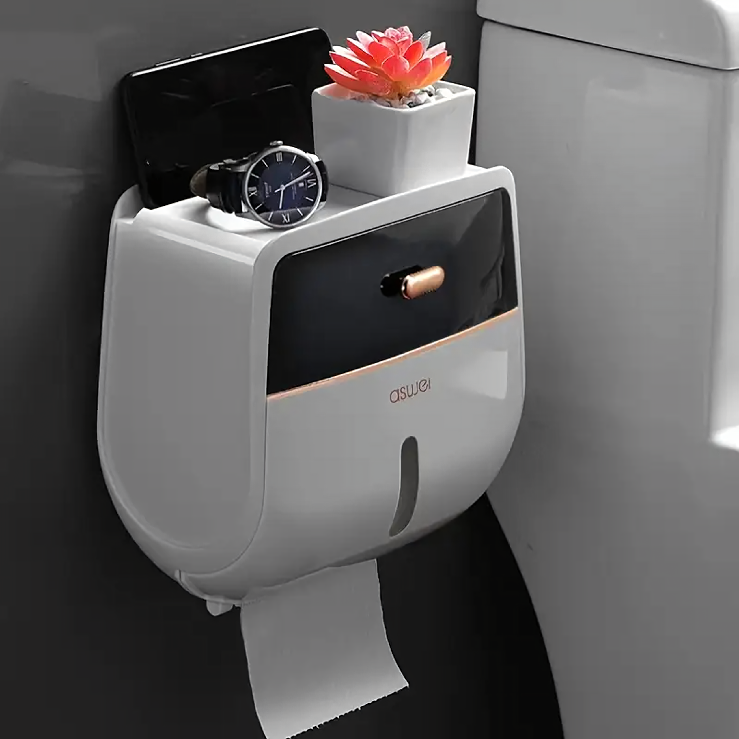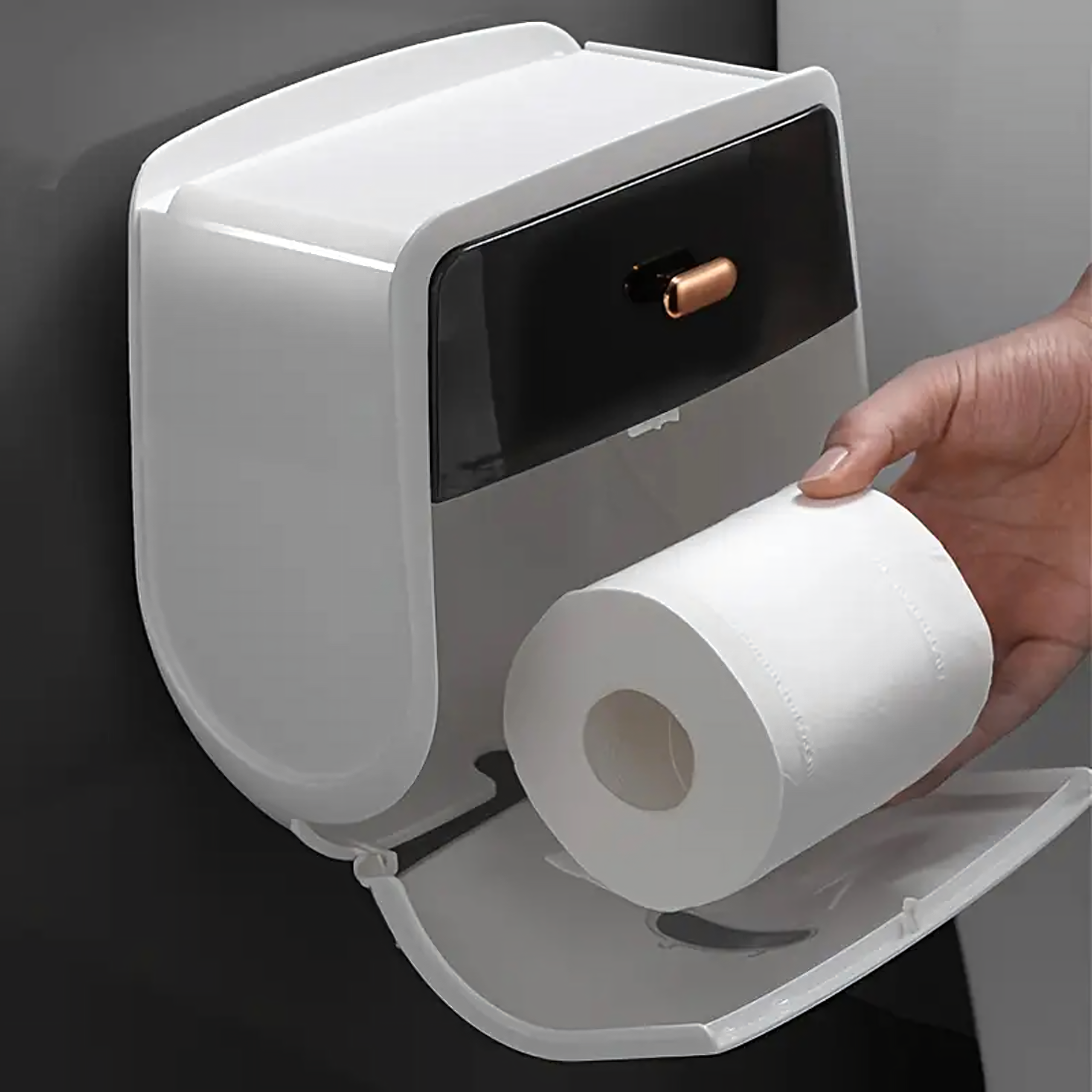 Uchwyt i pojemnik 2w1 na papier toaletowy oraz chusteczki – praktyczne i stylowe akcesorium do łazienki. Wodoodporny, pojemny i łatwy w uzupełnianiu, łączy funkcjonalność z eleganckim designem. Idealny do domu, biura, hotelu czy nawet samochodu.