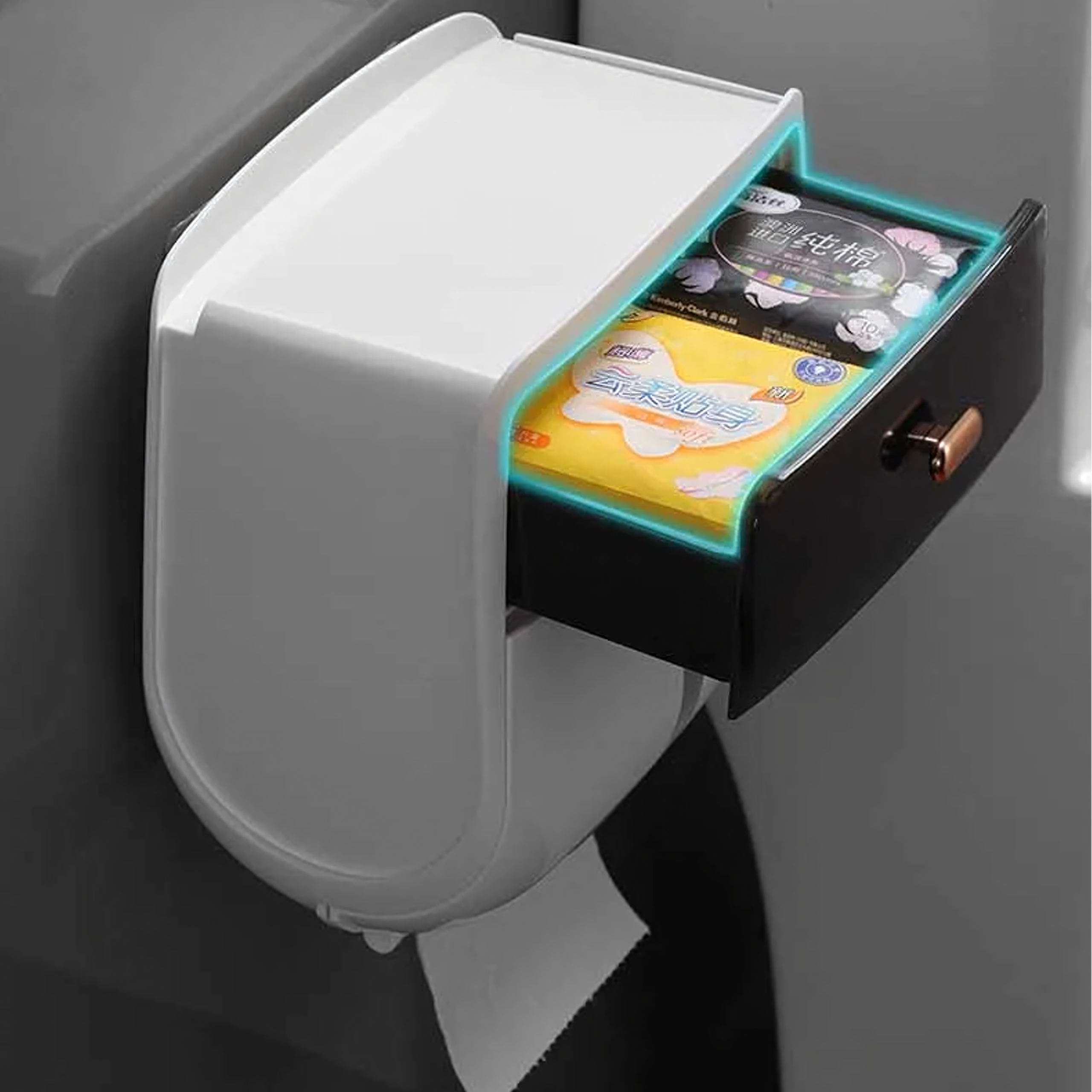 Uchwyt Dyspenser Pojemnik na Papier Toaletowy Dozownik z Szufladką Półka