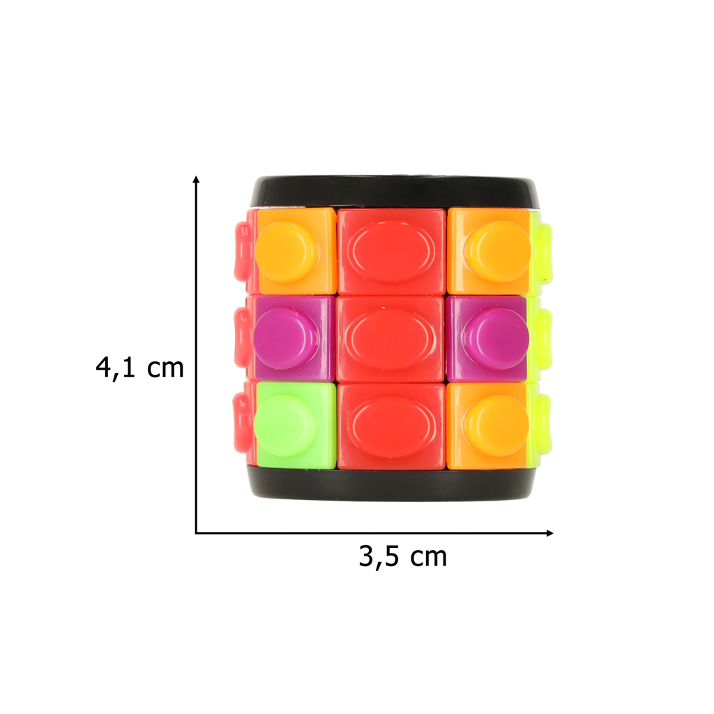 Układanka logiczna w formie walca z kolorowymi kostkami. Należy ułożyć taki sam kolor w jednej kolumnie. Łamigłówka zajmie ręce na długie godziny. Idealna podczas podróży. Uczy koncentracji i logicznego myślenia. Tworzywo:plastik. Wymiary:3,5×4,1cm.
