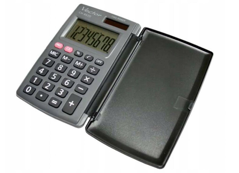 Vector Kalkulator kieszonkowy z klapką KAV CH-862D, szary