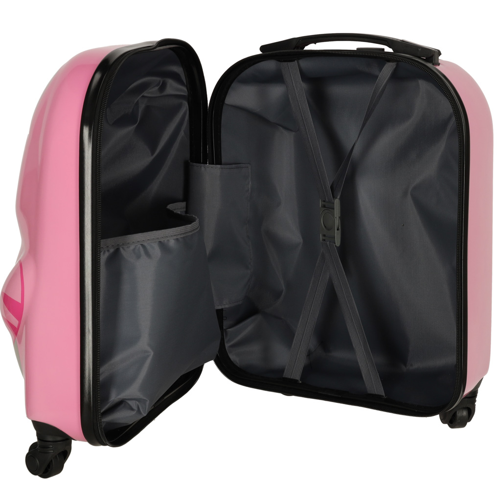 Walizka podróżna dla dzieci. Urocza grafika kota przykuje uwagę każdego malucha. Wyposażona w cztery kółka i rączkę teleskopową. Wnętrze wyłożone jest podszewką. Zamykana na zamek błyskawiczny. Kolor: różowy. Wymiary: 31 cm x 46 cm x 26 cm.
