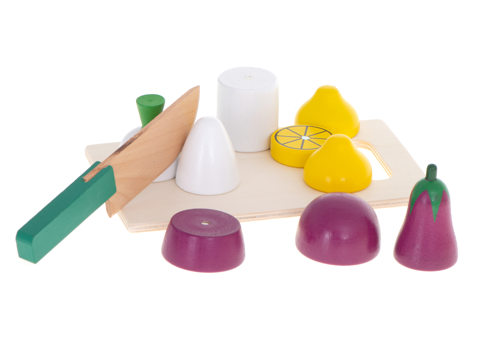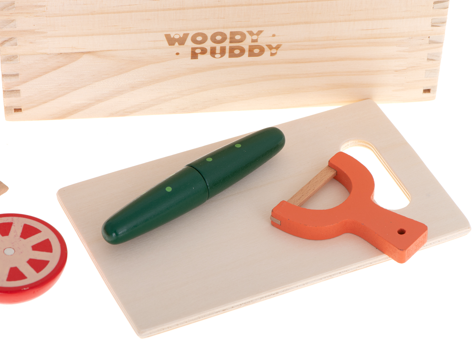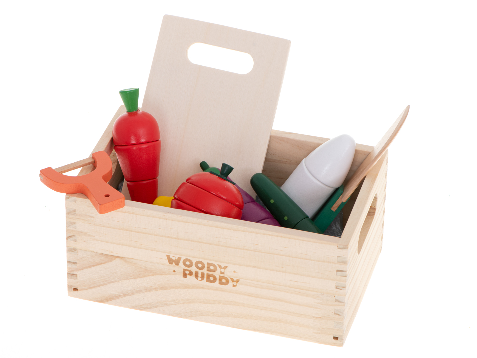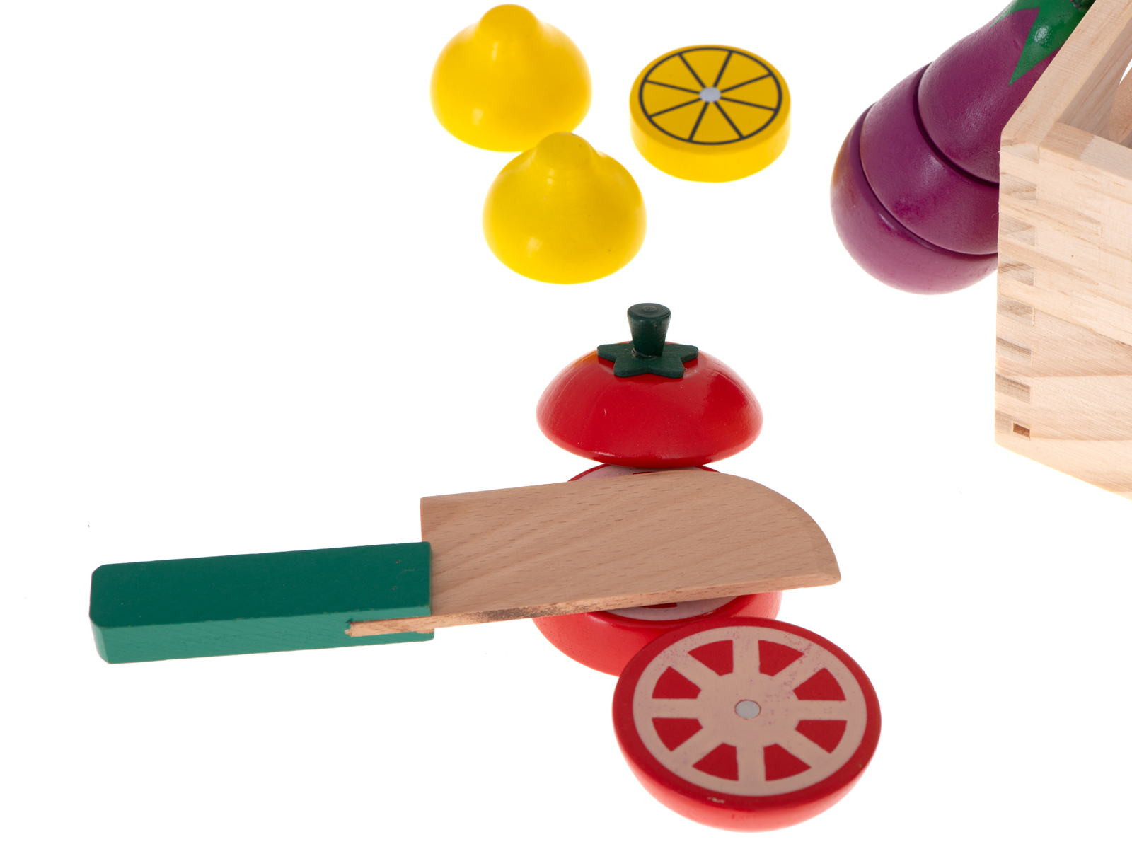 Warzywa drewniane do krojenia na magnes w skrzynce + akcesoria