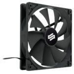 Klasycznie czarny kolor wentylatora doskonale współgra z większością obudów, a opleciony kabel zasilający pomaga w utrzymaniu porządku w kablach oraz łatwo się układa. W komplecie znajdują się także odpowiedzialne za redukcję drgań silikonowe podkładki pod śrubki.