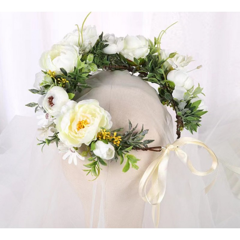 Romantyczny wianek na głowę z wysokiej jakości kwiatów sztucznych.
