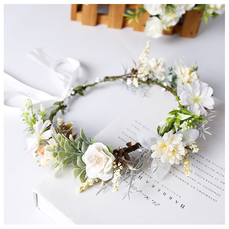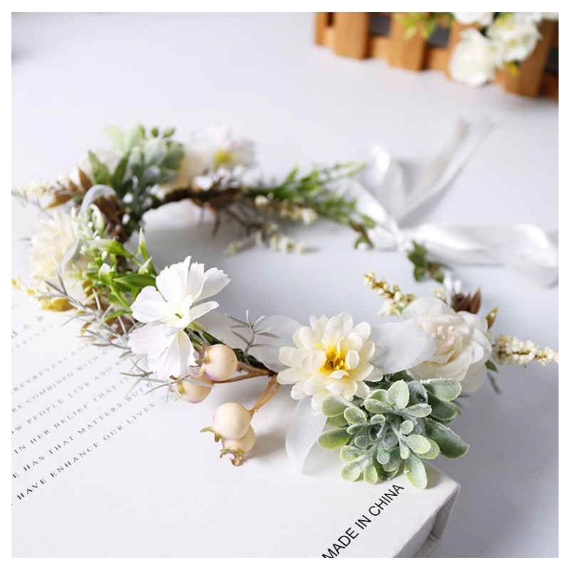 Romantyczny wianek na głowę z wysokiej jakości kwiatów sztucznych.