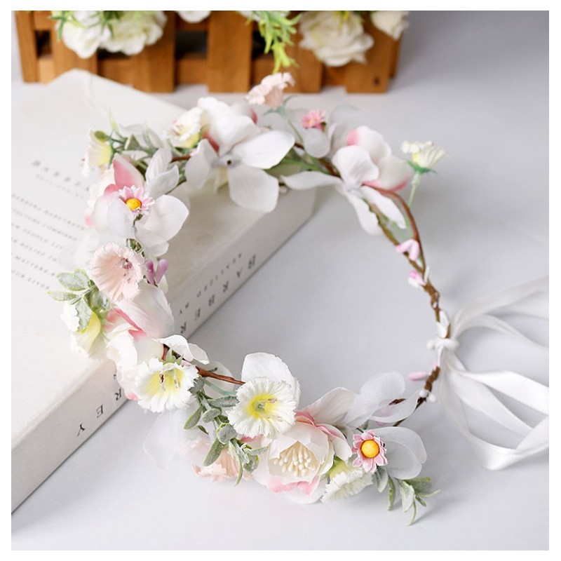 Romantyczny wianek na głowę z wysokiej jakości kwiatów sztucznych.