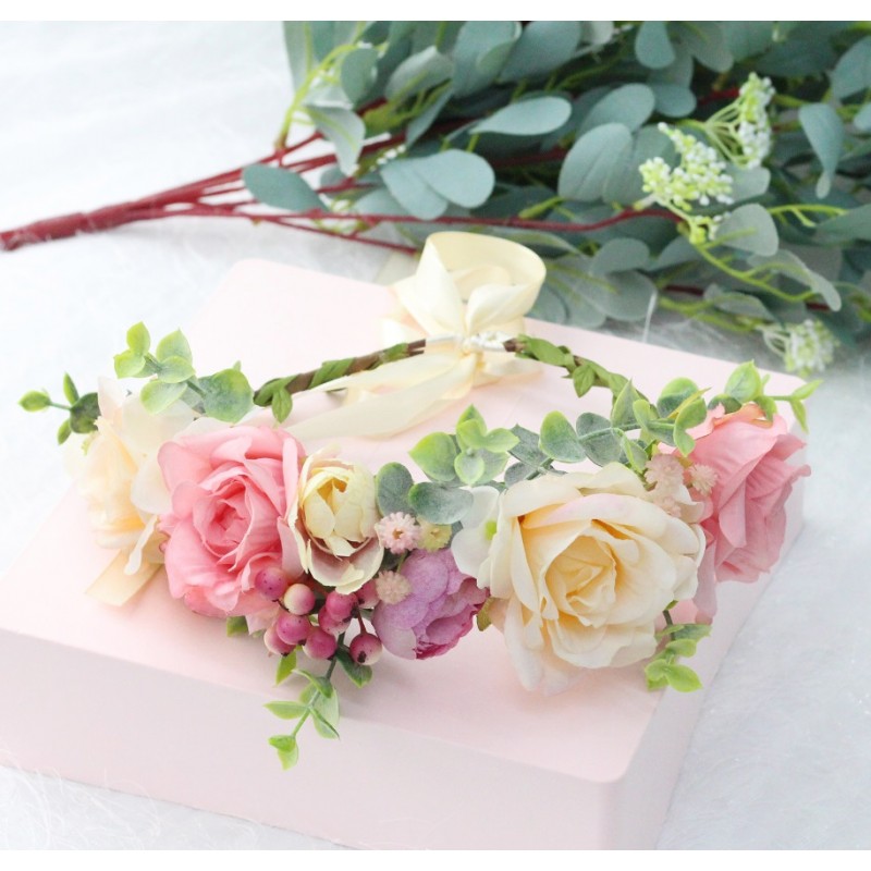 Romantyczny wianek na głowę z wysokiej jakości kwiatów sztucznych.