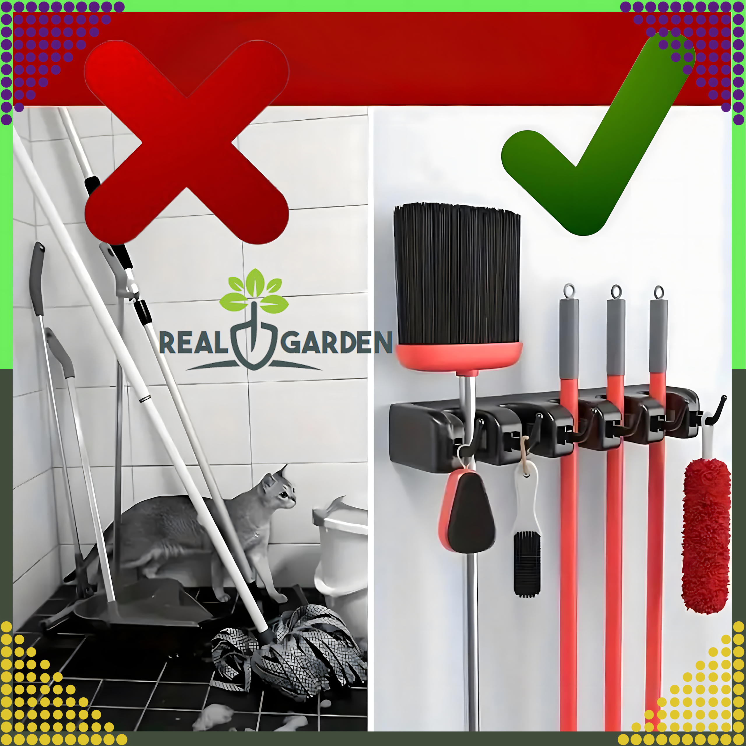 👉 Zapomnij o bałaganie! Nasz wieszak ścienny na narzędzia to idealny sposób, aby uporządkować wszystkie miotły, mopy, grabie i akcesoria w jednym miejscu!