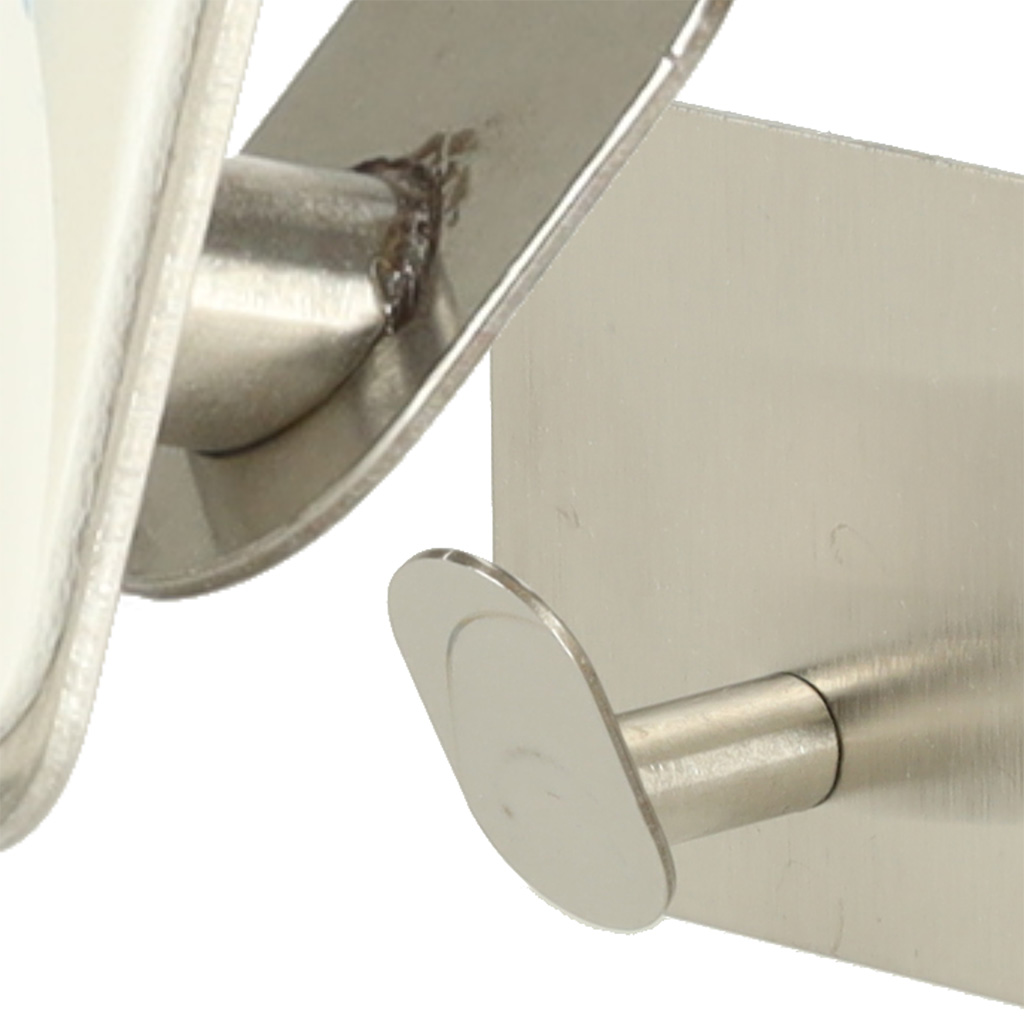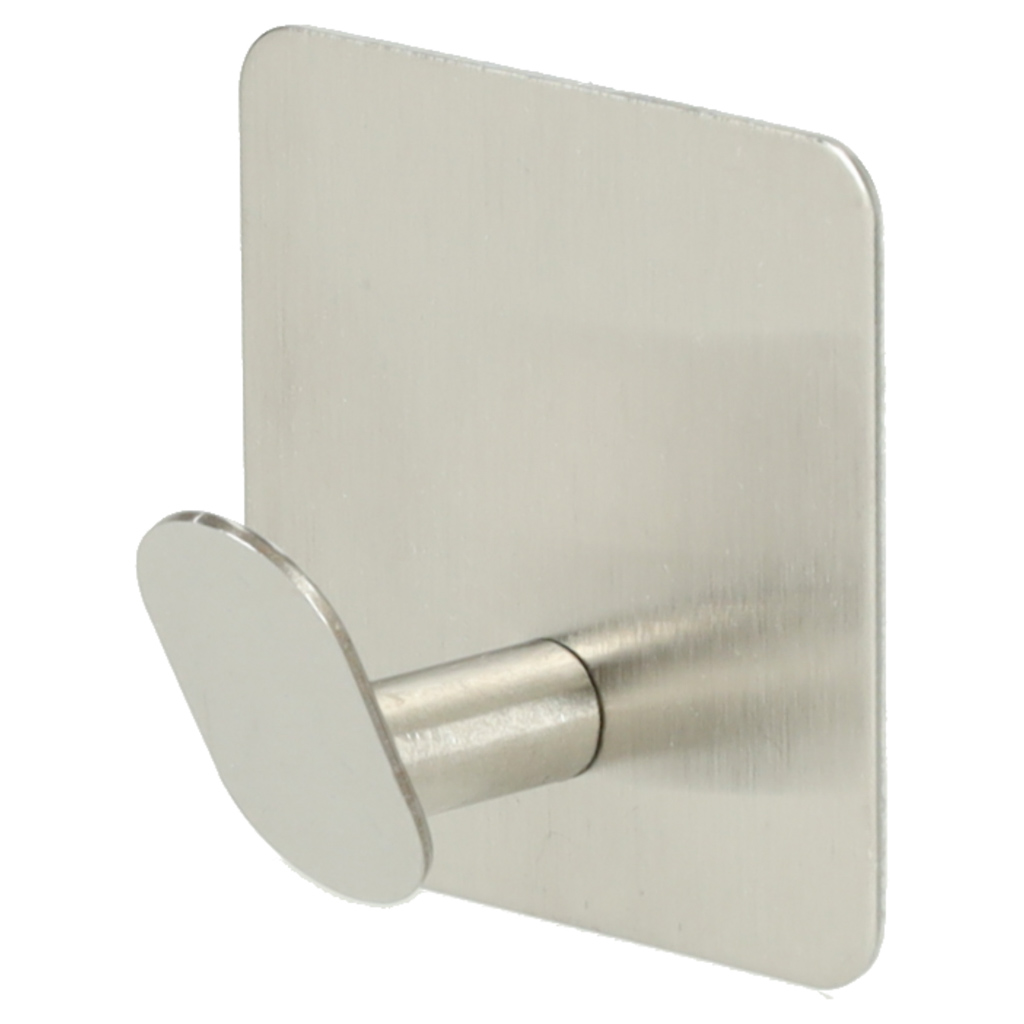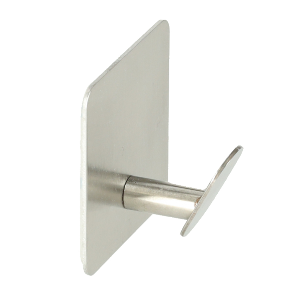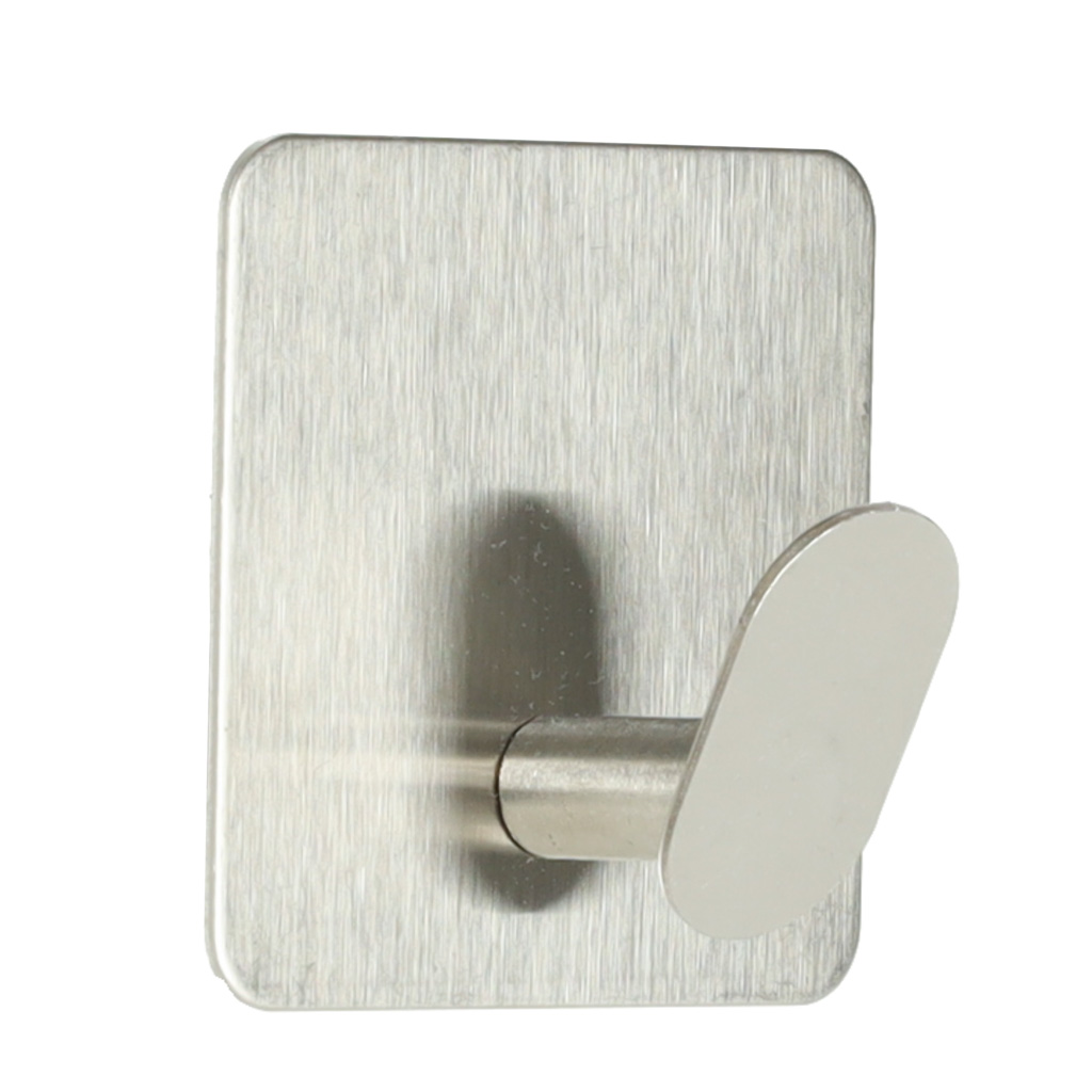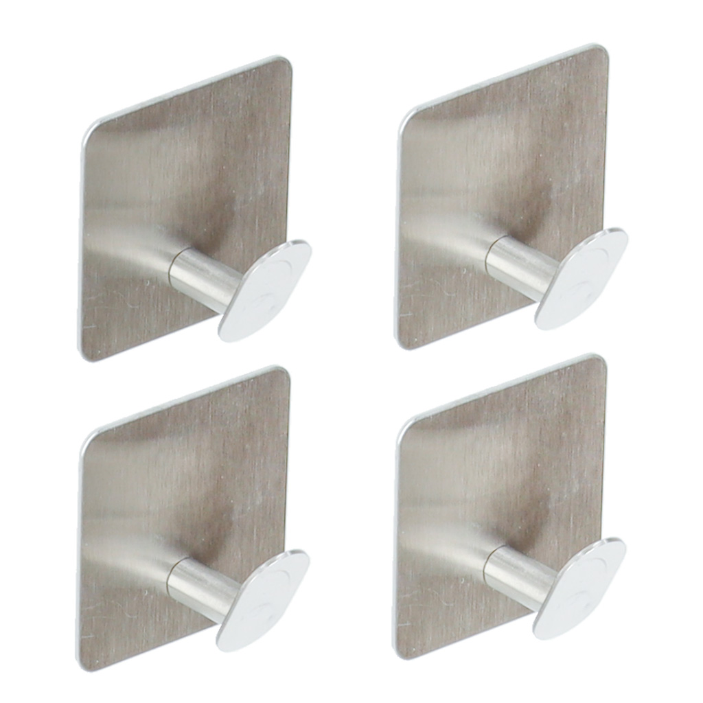 Zestaw 4 samoprzylepnych wieszaków metalowych ze stali nierdzewnej. Montaż bez wiercenia – taśma 3M PE Foam. Udźwig do 1 kg. Odporne na wilgoć, idealne do łazienki, kuchni, sypialni. Estetyczny, prostokątny kształt i srebrne wykończenie.