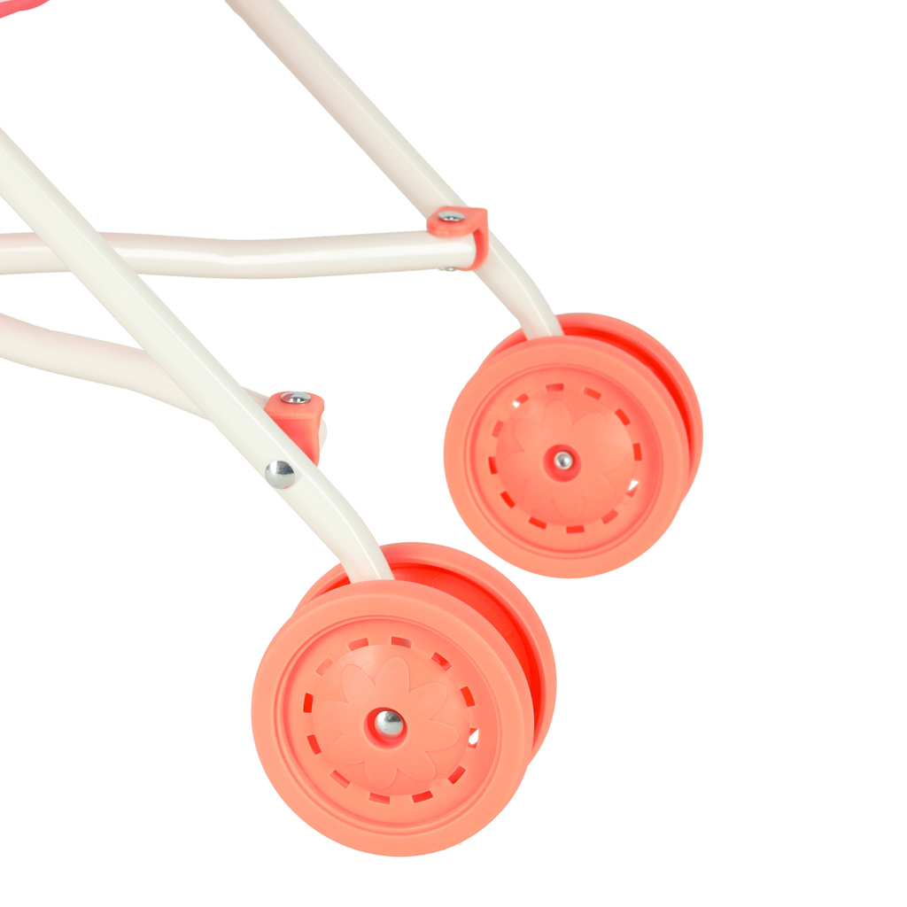lalkami. Różowy kolor i atrakcyjny wygląd spacerówki zachęcają do