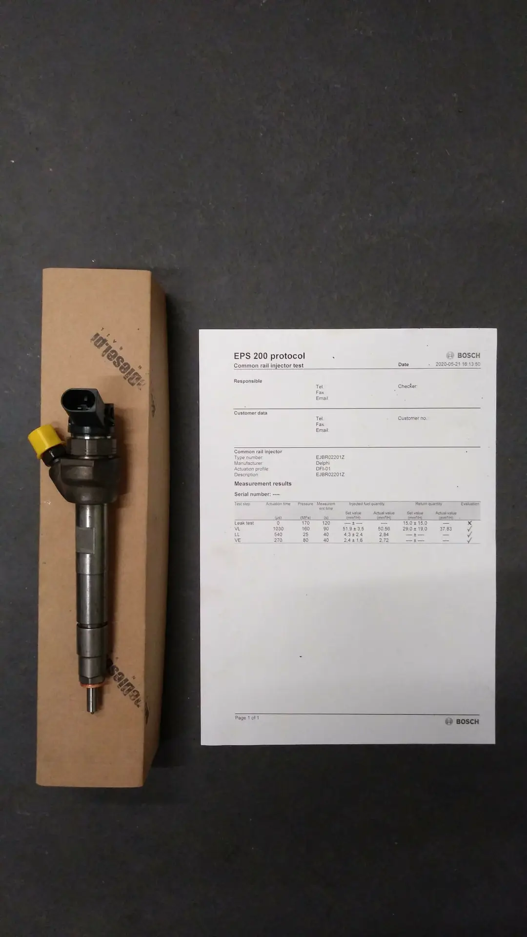 Wydruk z testera Bosch EPS – potwierdzający parametry techniczne