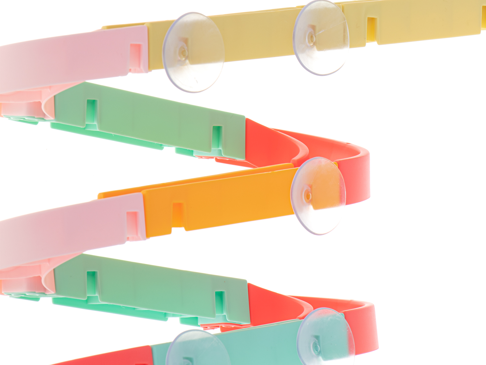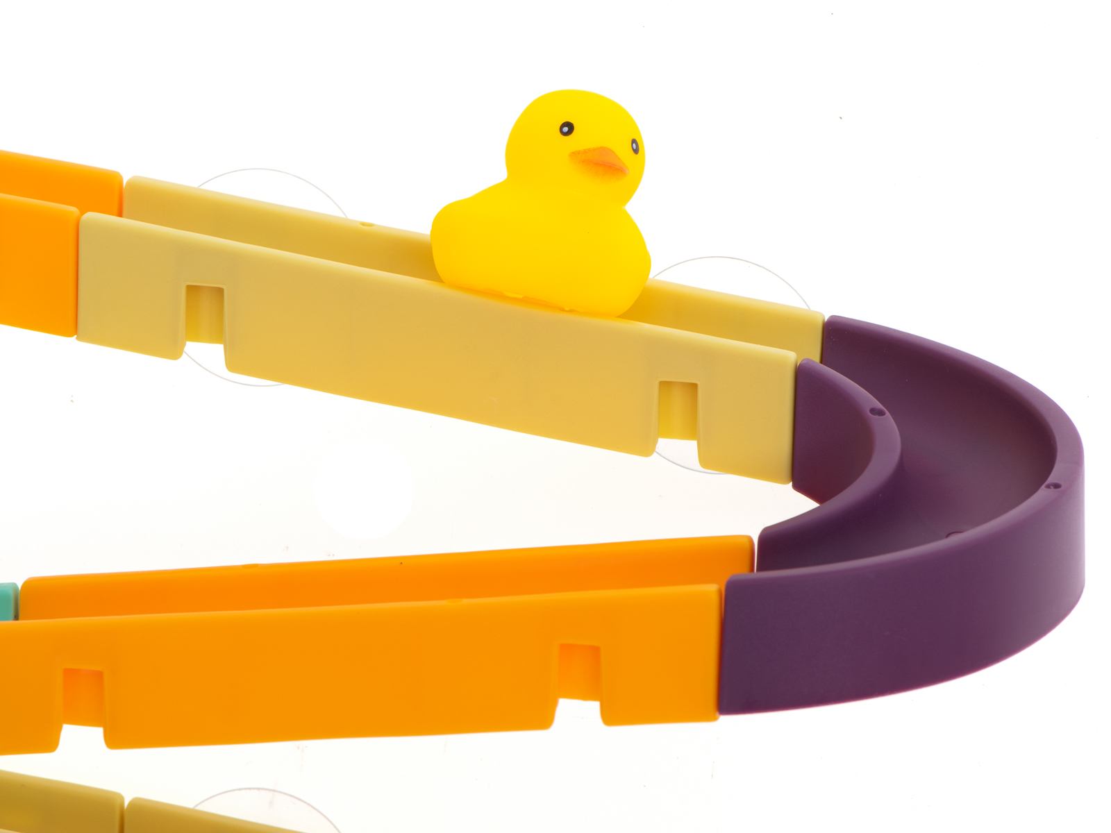 zabawki dołączono przyssawki, które ułatwią przymocowanie toru do glazury