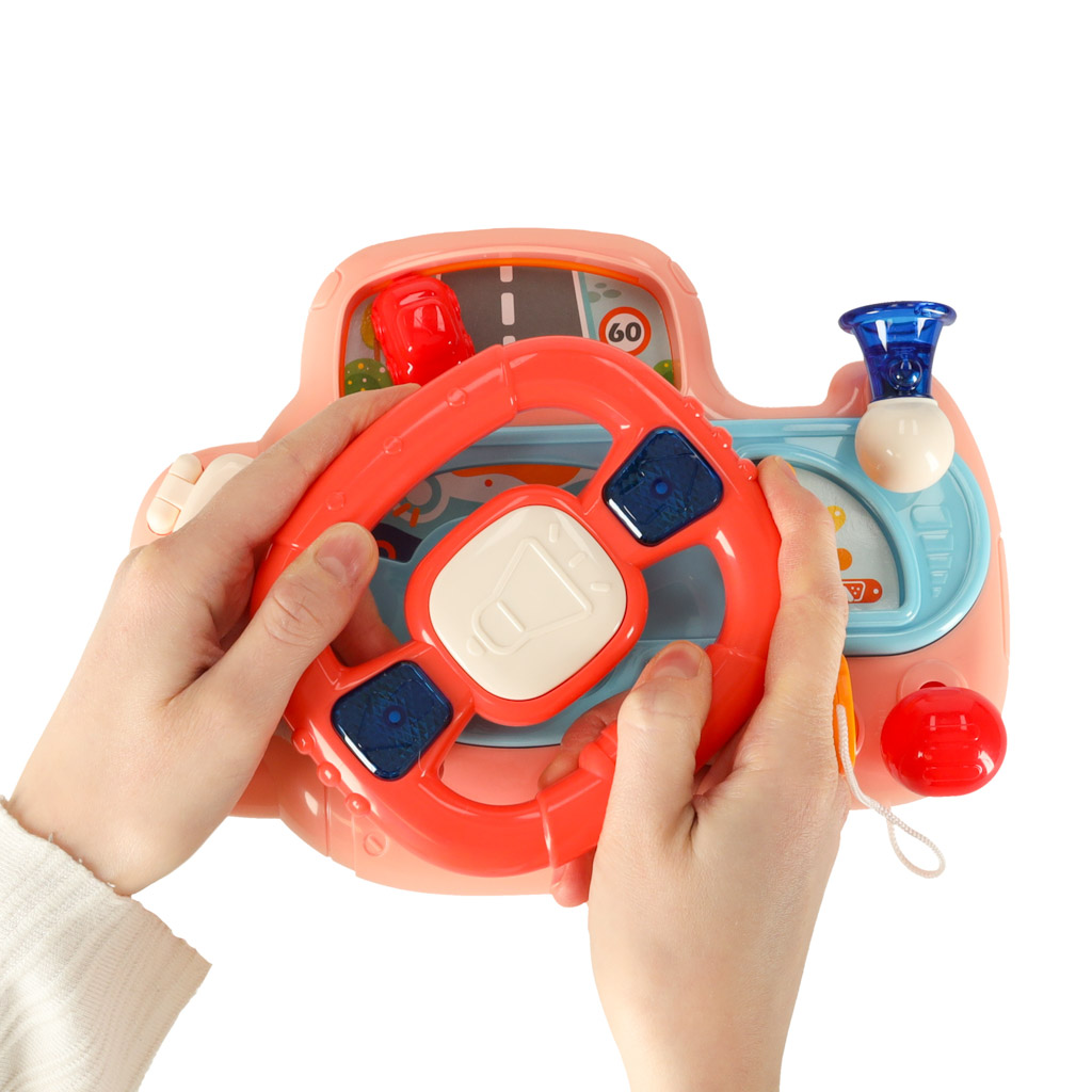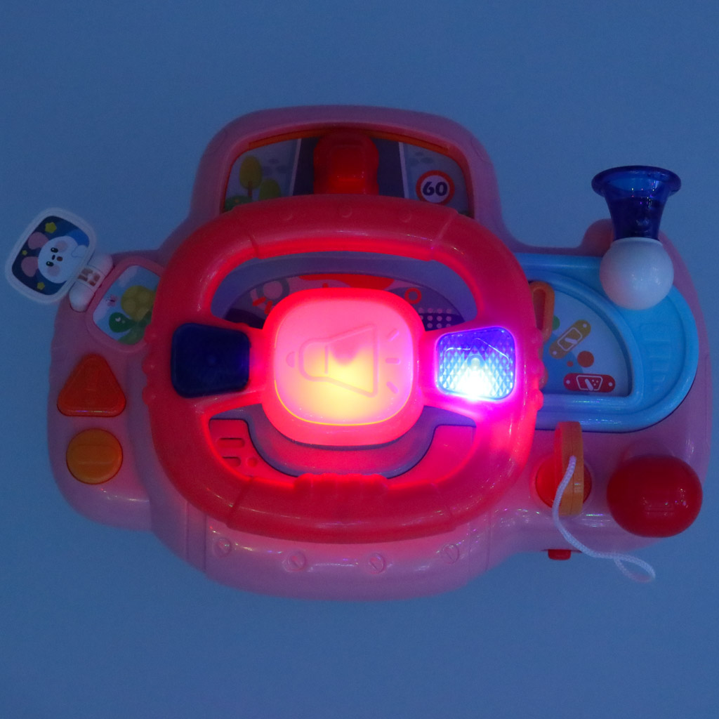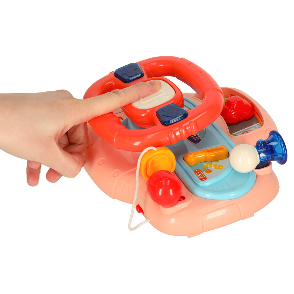 Zabawka interaktywna kierownica dla dzieci dziecka malucha do wózka symulator muzyka dźwięki różowa