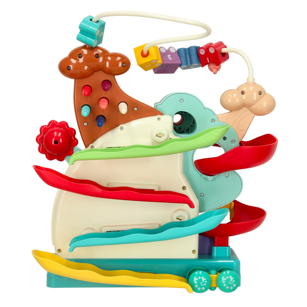 – dwa tory kulkowe, wagoniki z cyframi i gra „nakarm ptaszka” zapewniają