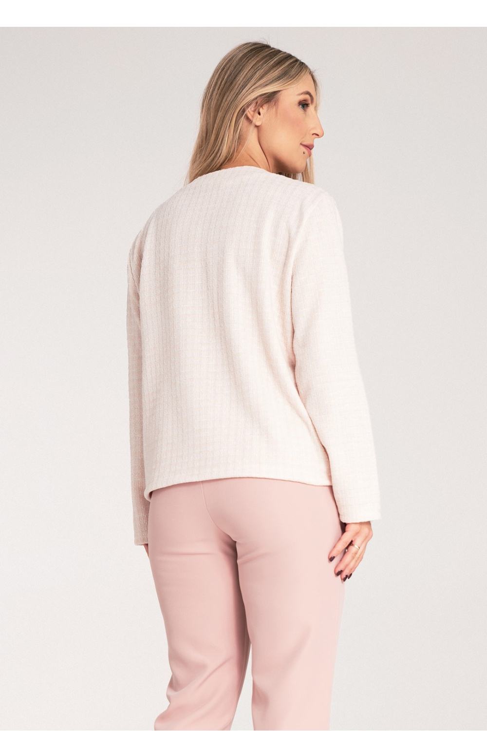 Klasyczny żakiet w kratę ala Chanell. Żakiet z fakturowanego materiału w stylu tweedowym. Zapinany na złote, ozdobne guziki. Z naszytymi wsuwanymi kieszeniami.