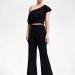 Długi żakiet o luźnym kroju, zapinany na ozdobne guziki dwurzędowo, rękawy marszczone na dole. Kieszenie z klapami, z podszewką.