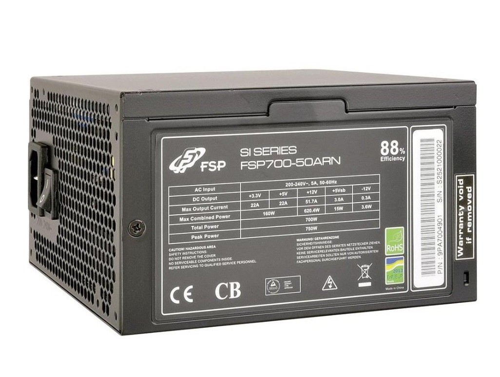 Zasilacz FSP Fortron 700-50 ARN o mocy 700W i wysokiej wydajności do 88%. Seria ARN chroni komputer, zapewniając pełną ochronę (OCP, OVP i SCP). Seria ARN ma czarną powłokę, dzięki czemu jest najlepszym wyborem dla graczy i konstruktorów systemów korzystających z czarnej obudowy.