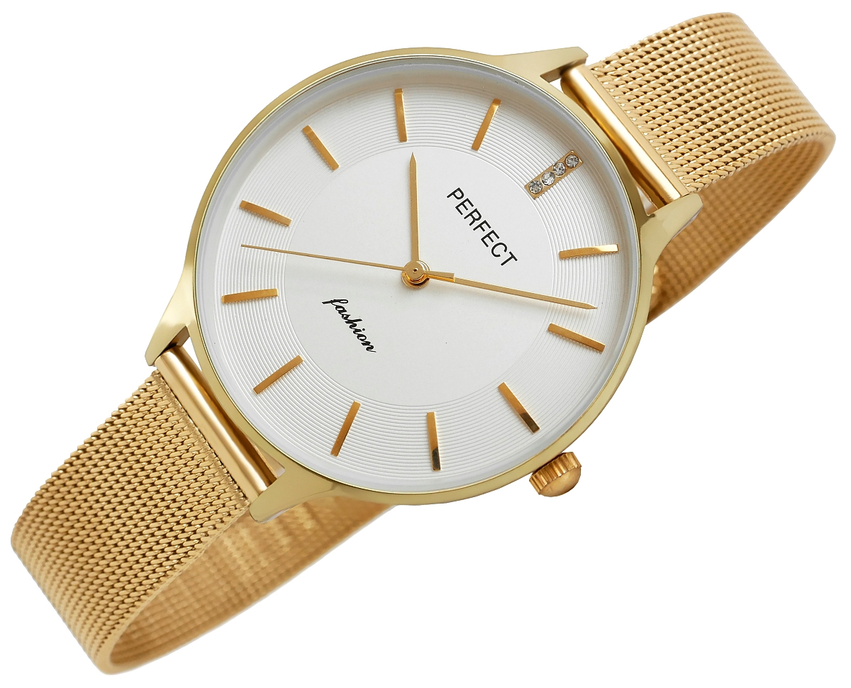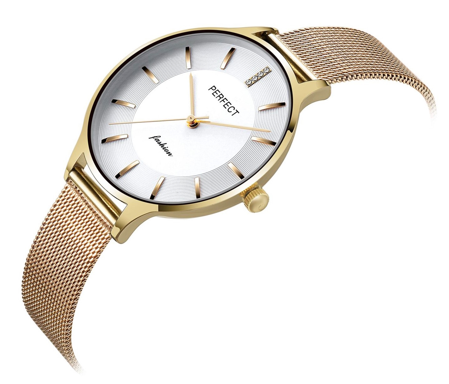 Wykonana z wysokiej jakości stali, idealnie dopasowuje się do damskiego nadgarstka, zapewniając wygodę noszenia przez cały dzień. Jej elegancka struktura i zapięcie ozdobione logiem marki Perfect dodają zegarkowi wyjątkowego stylu i wyróżniają go na tle innych.