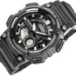 CASIO AE-1300WH to zegarek, który w pełni odpowiada męskiemu stylowi życia. Z czasem światowym i 29 strefami czasowymi nigdy nie stracisz orientacji w podróży. Stoper z funkcją dodawania czasu idealnie sprawdzi się w trakcie treningów, a 9 minutników z auto-powtarzaniem pozwoli na precyzyjne interwały. Codzienny alarm i sygnał godzinowy przypomną o ważnych momentach, a podświetlenie LED w bursztynowym kolorze ułatwi korzystanie w ciemności. Zegarek jest odporny na wodę do 100 metrów, ma pełny kalendarz do 2099 roku i zapewnia dokładność do 30 sekund na miesiąc. Funkcjonalność, która trafia prosto w męskie potrzeby – precyzyjnie, niezawodnie, stylowo.