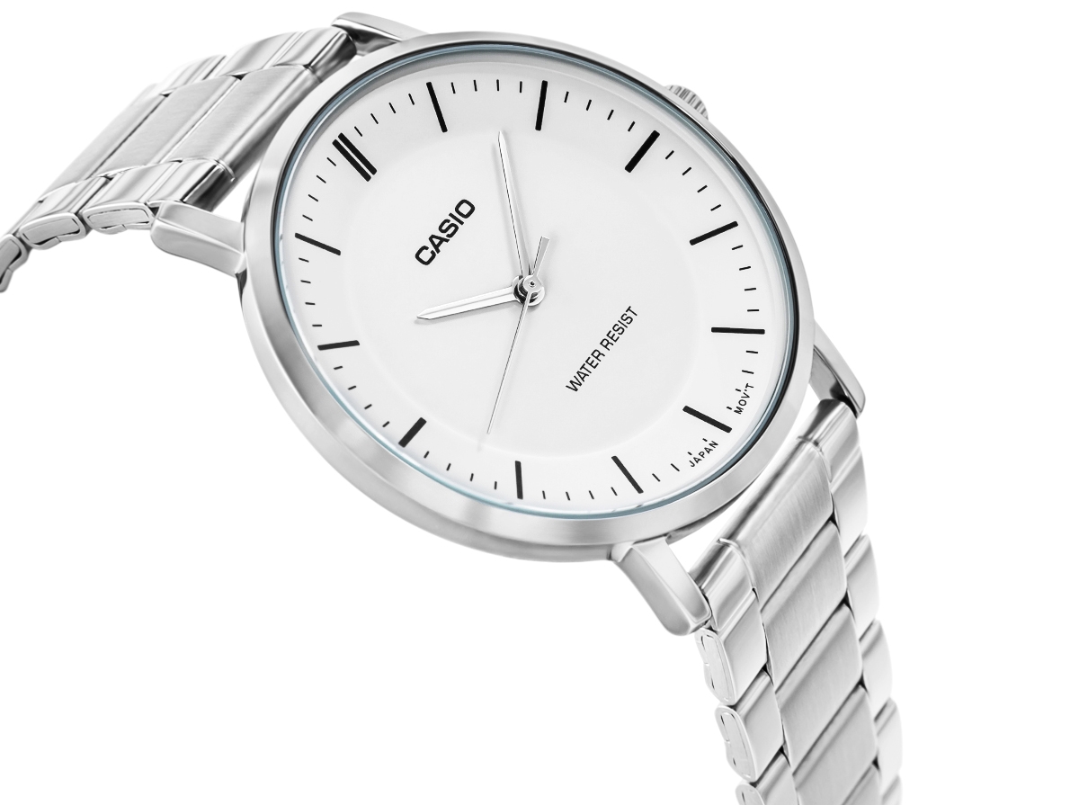 MTP-VT04D to ukłon w stronę czystego designu – bez rozpraszaczy, bez komplikacji, bez hałasu. Tylko Ty i czas – odczytywany z idealnie zbalansowanej tarczy, na której każda kreska ma sens, a każda sekunda płynie w rytmie prostoty. Brak cyfr? To nie brak – to wybór. Brak datownika? Również. Wszystko, co zbędne, zniknęło, by zostawić to, co najważniejsze. Czytelność. Równowagę. Spokój. Powierzchnia tarczy o matowej teksturze dodatkowo nadaje całości nowoczesnego, minimalistycznego charakteru. Ten zegarek dopasowuje się do Ciebie, nie odwrotnie. Idealnie odnajdzie się czy to pod mankietem marynarki, czy w towarzystwie ulubionego T-shirtu. Zegarek jest cieńki (8,5 mm) i lekki (90g), a całość wygodna i gotowa, by być z Tobą codziennie – nie dominując, ale dopełniając.
