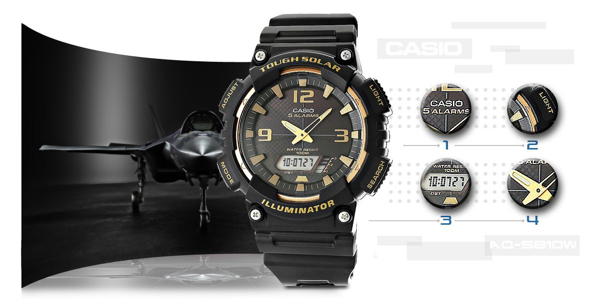 Dzięki wbudowanemu panelowi słonecznemu ten model AQ-S810W nie potrzebuje zasilania baterią.