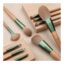 Każdy pędzel pakowany jest osobno w folię. Dzięki użytym syntetycznym materiałom do produkcji włosia nie wchłania ono dużej ilości kosmetyków i jest łatwe w utrzymaniu w czystości wystarczy je przemyć wodą z mydłem.