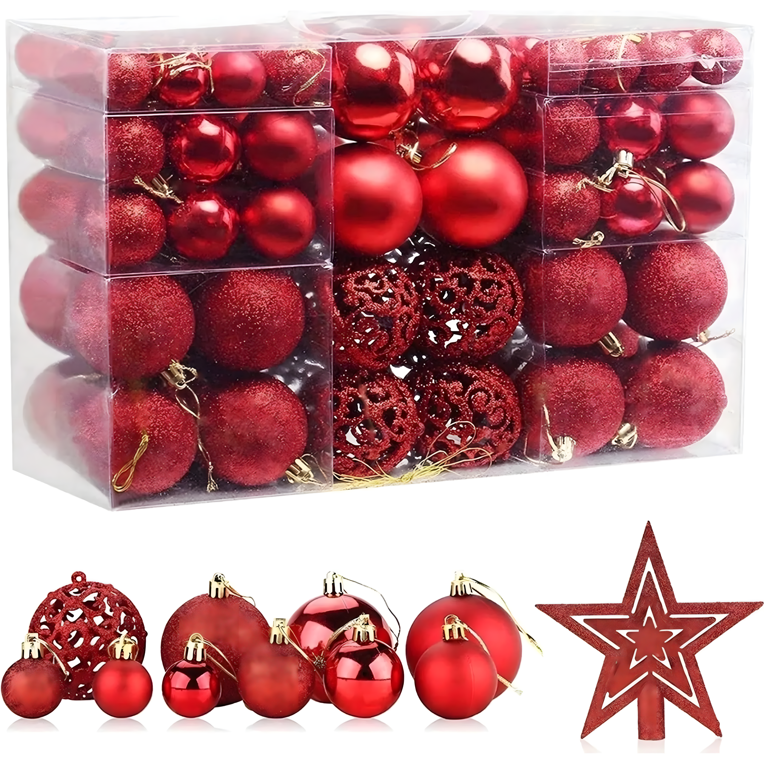 Zestaw 100 szt Bombek Choinkowych z Zawieszką na Choinkę Nietłukące Gwiazda