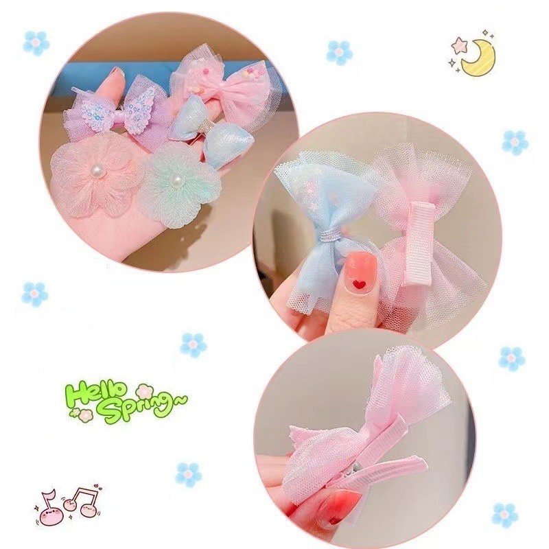 Zestaw 10w1 spinek wsuwek do włosów tiulowe KOKARDY cekiny SP302