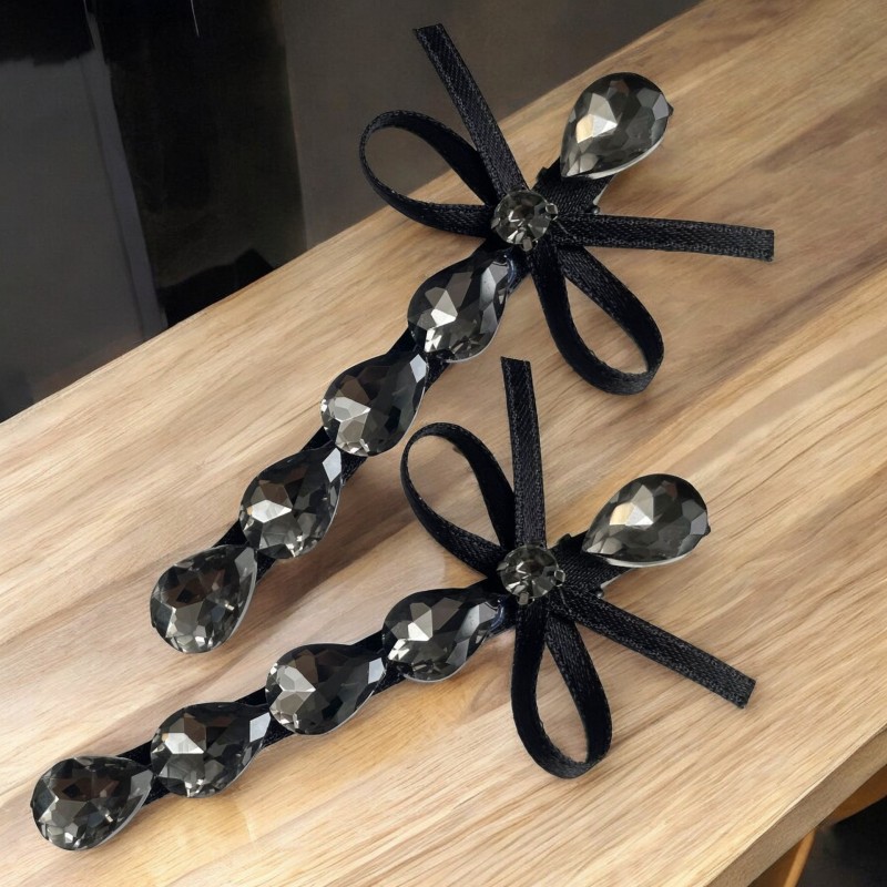 Zestaw 2 spinek do włosów, kryształowe Vintage czarne XL 8,3 cm SP338