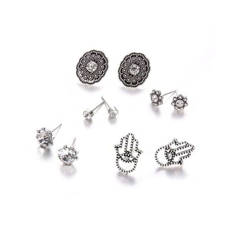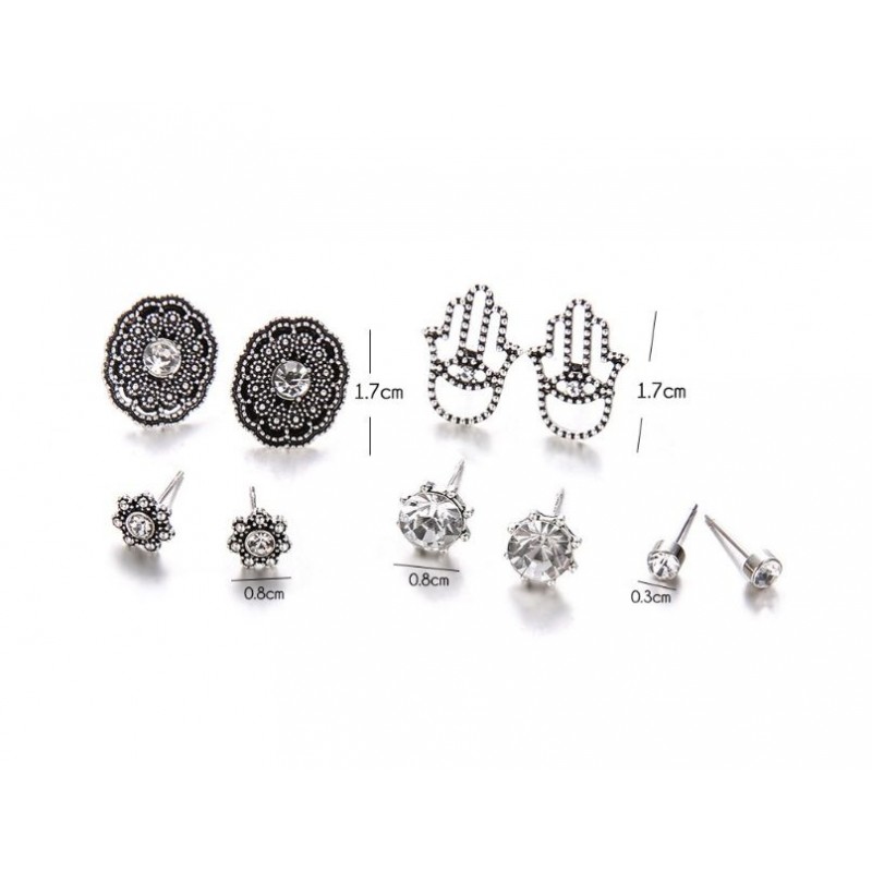 ZESTAW 5 PAR KOLCZYKÓW BOHO KRYSZTAŁKI HAMSA SREBRNE K893