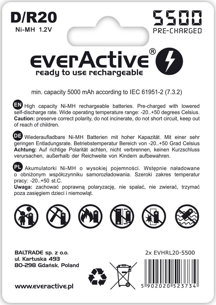 Zestaw akumulatorków everActive EVHRL20-5500 (5500mAh ; Ni-MH)