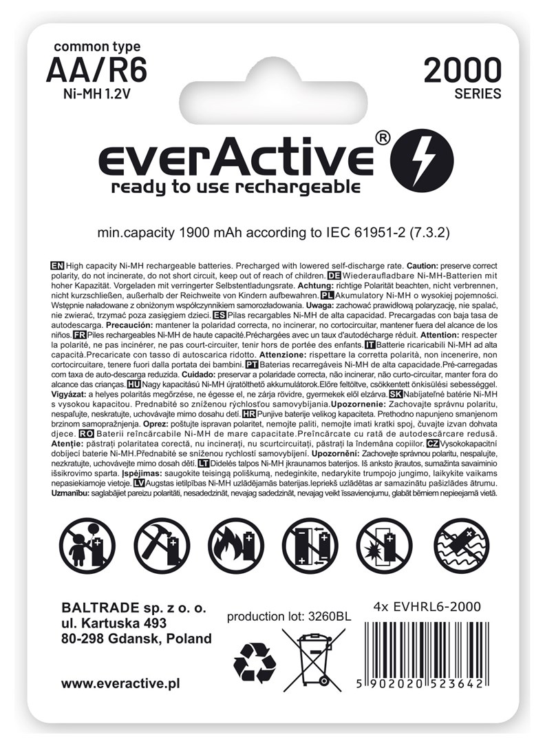 Zestaw akumulatorków everActive EVHRL6-2000 (2000mAh ; Ni-MH)
