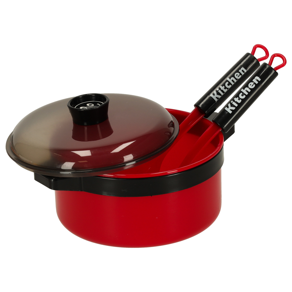 Zabawki kuchenne dla dzieci – zestaw 35 akcesoriów do kreatywnej zabawy w gotowanie. Rozwija wyobraźnię, pobudza zmysł motoryki i rozbudza apetyt także u niejadków. Wymiary: 28 cm x 23 cm x 18 cm, kolor: czerwony