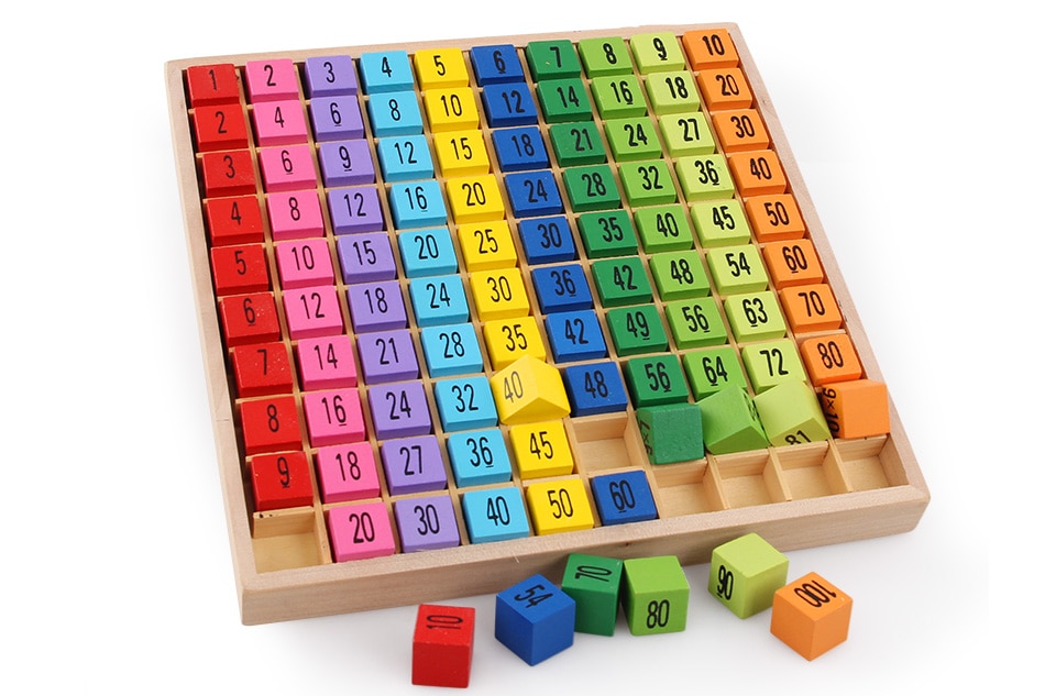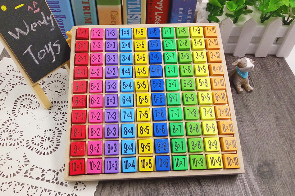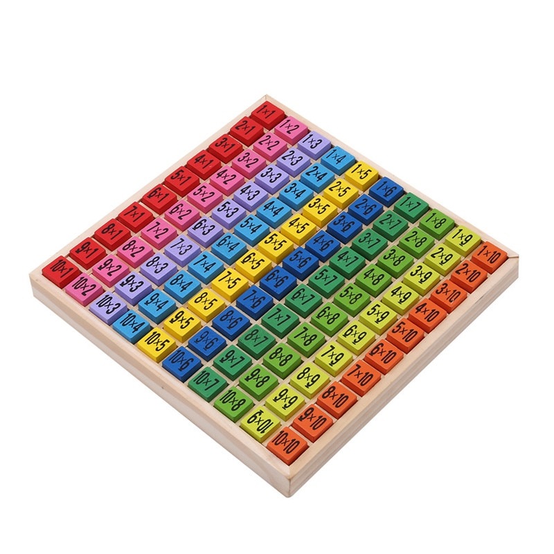 Zestaw edukacyjny do nauki tabliczki mnożenia. Zainteresuje każde dziecko. Materiał: drewno. Wymiary: 19*19*2cm