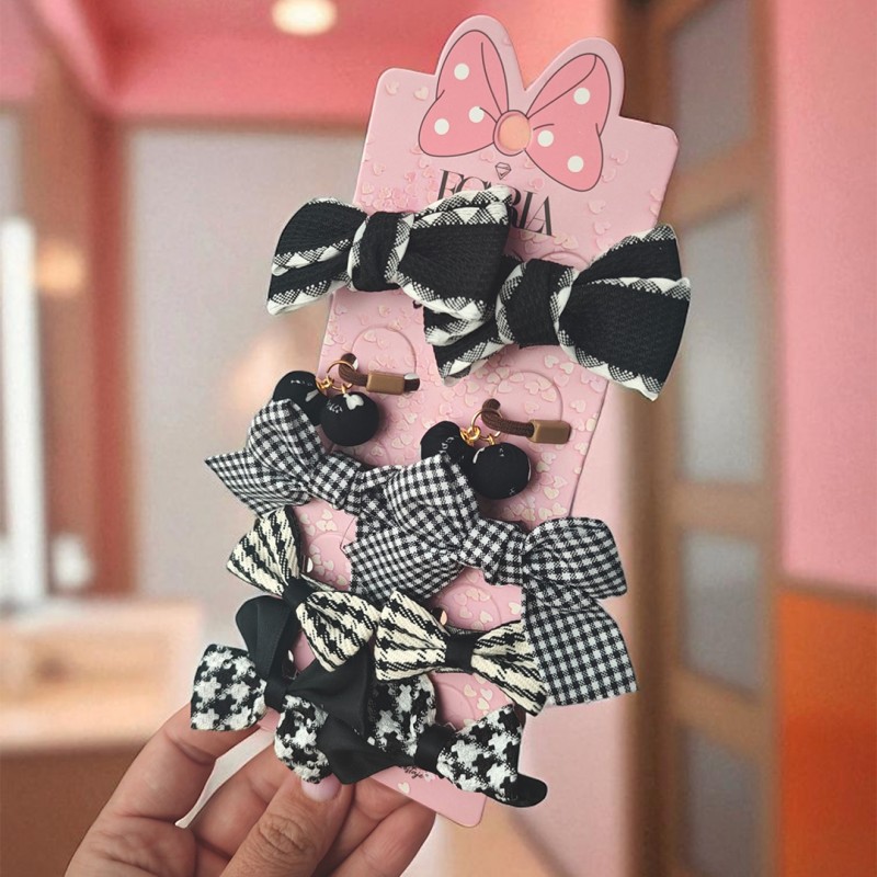 Zestaw frotek gumek do włosów 10w1 na plakietce, KOKARDKI czarno białe GUM172