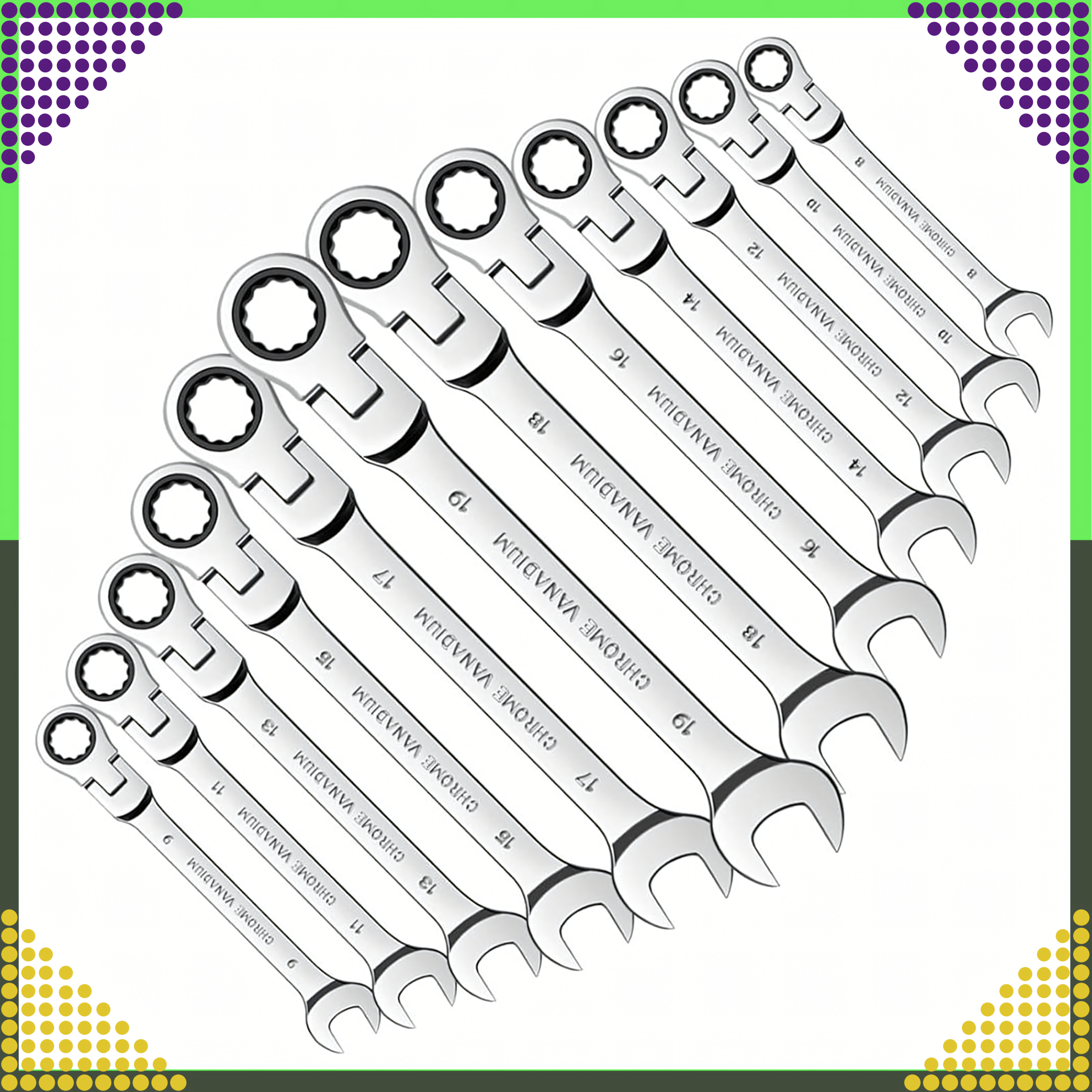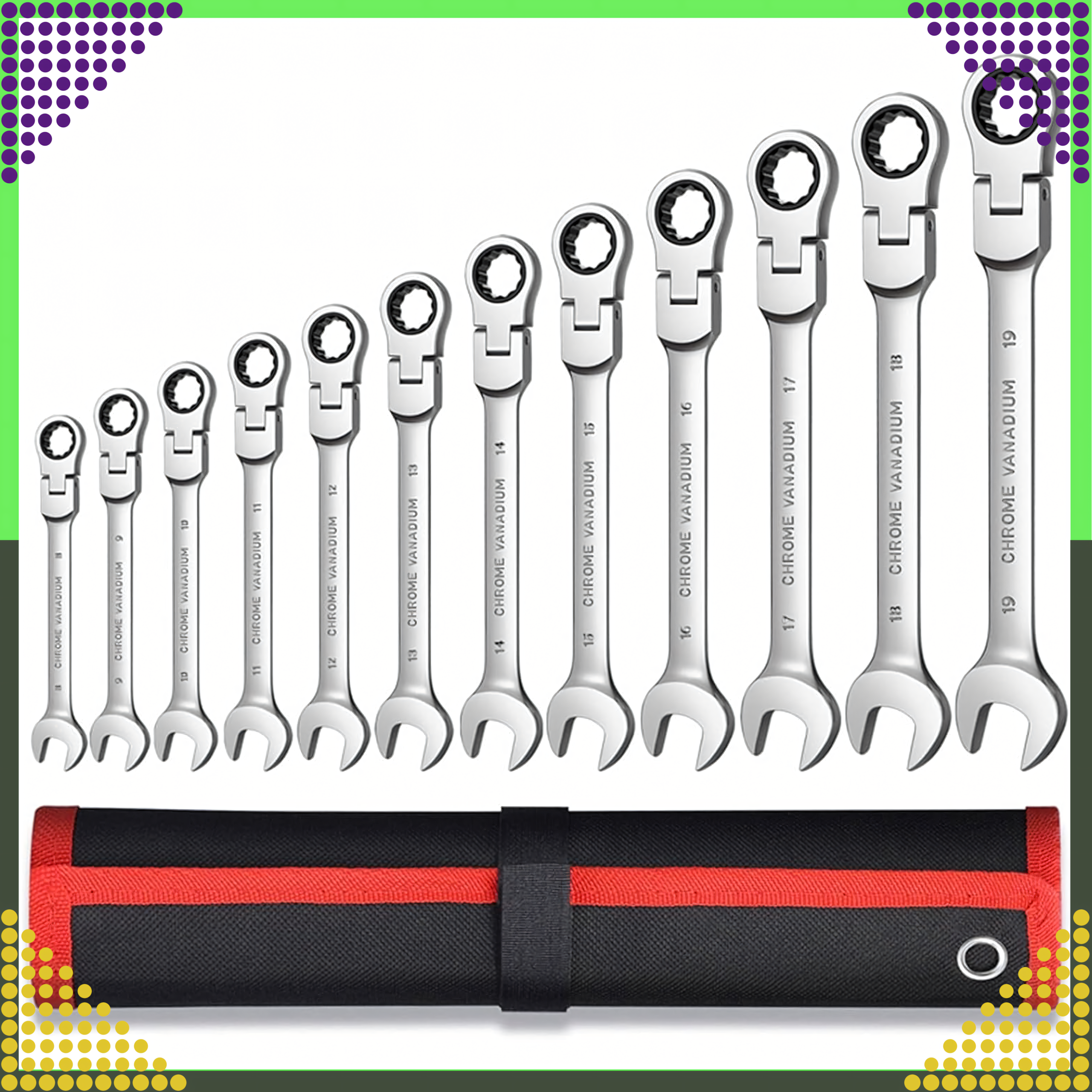 Zestaw Kluczy Płasko Oczkowych z Grzechotką Oczkowe 8-19mm Komplet 12 szt