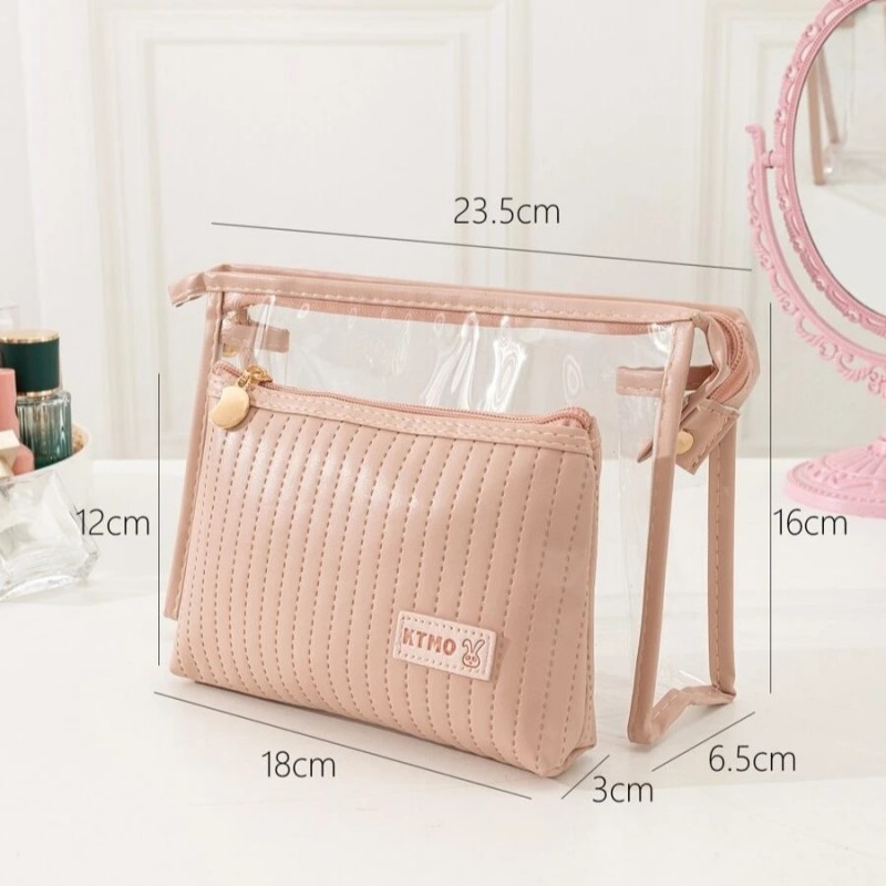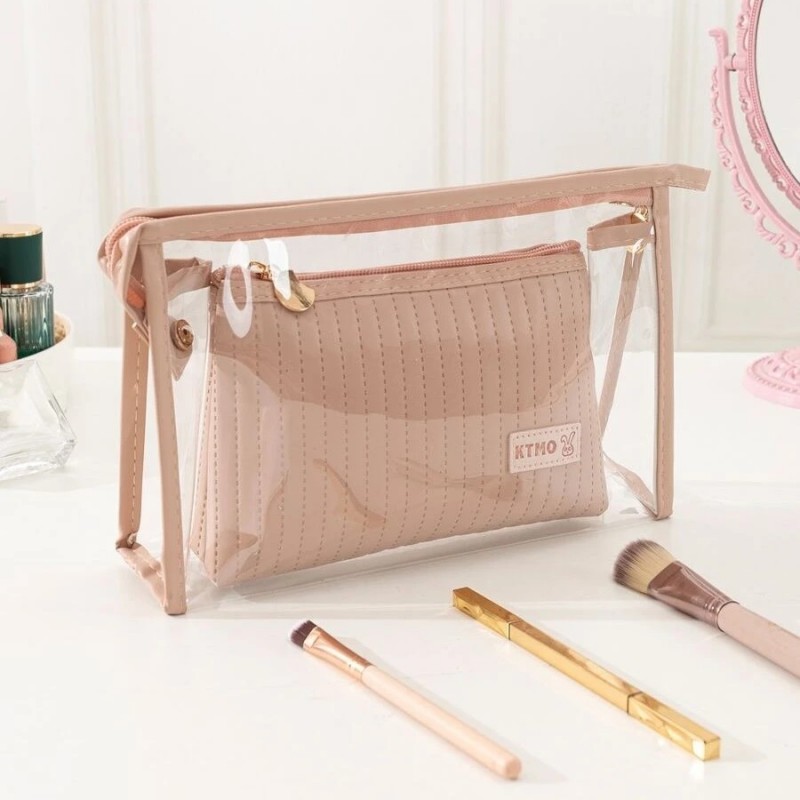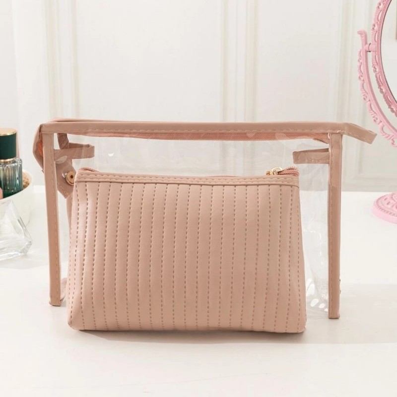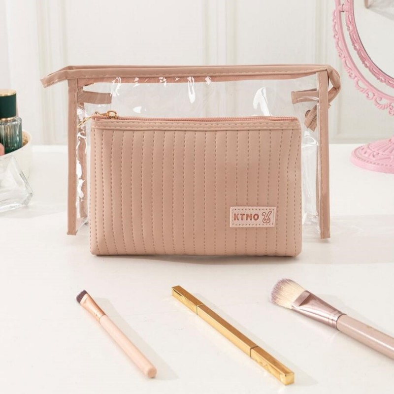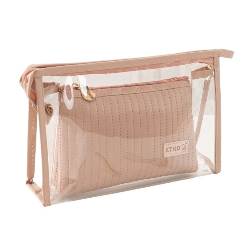 Zestaw kosmetyczek 2w1 Pudrowy Róż transparentna KS102WZ2