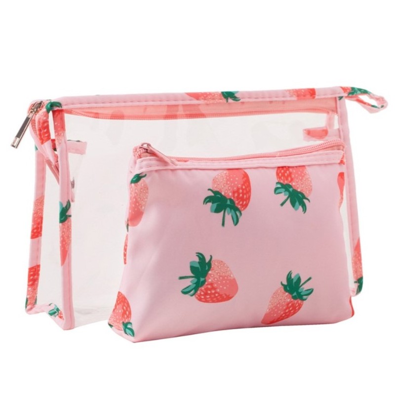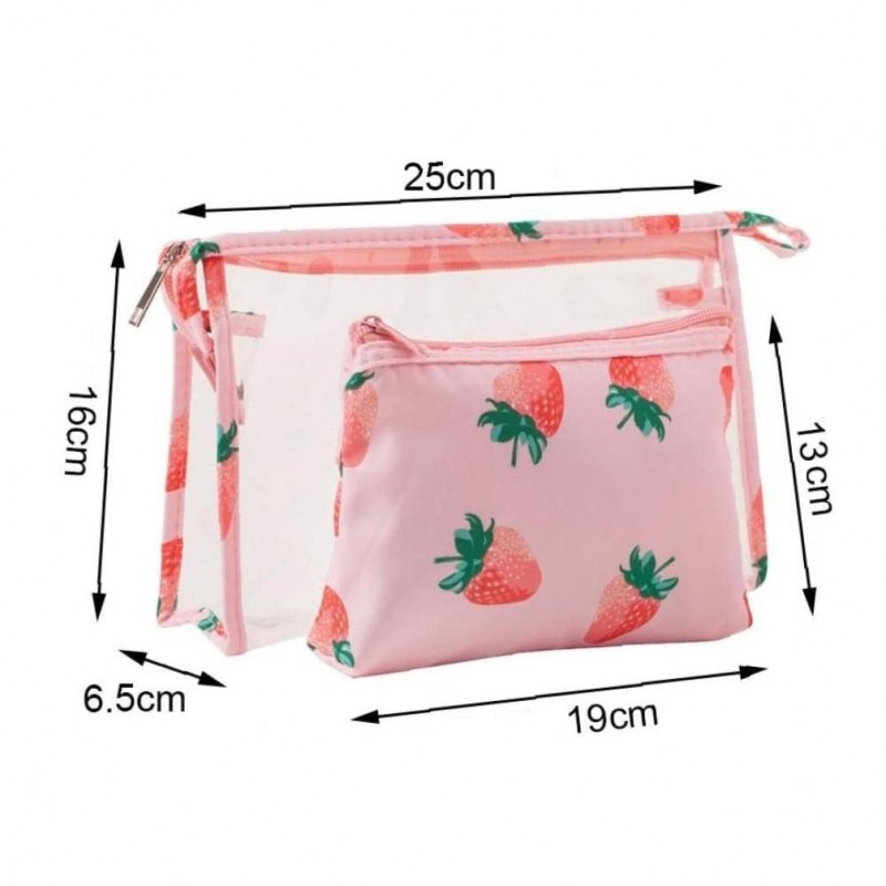 Zestaw kosmetyczek 2w1, saszetki, transparentna TRUSKAWKI KS152
