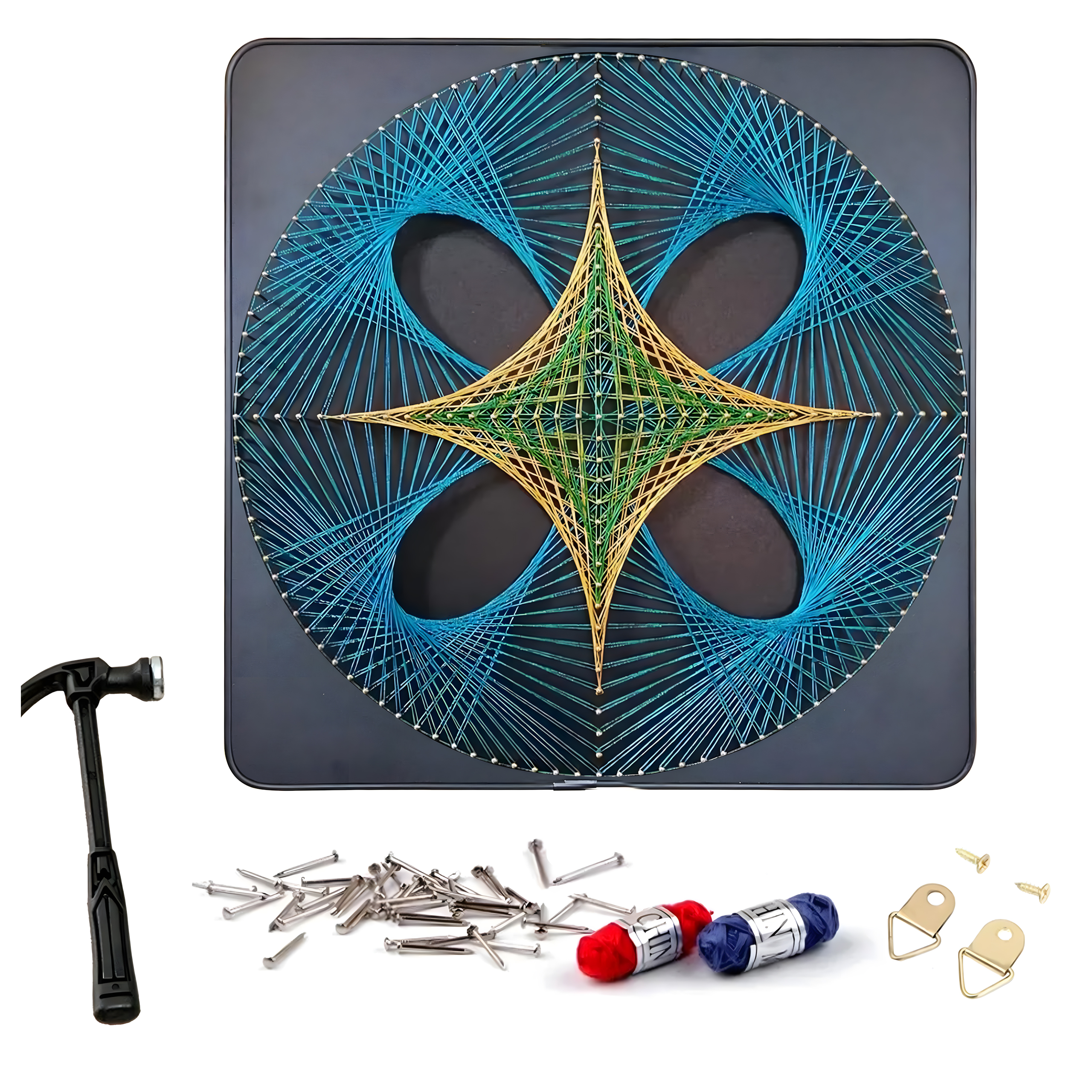 Zestaw String Art to po polsku Sztuka Nici, malowanie bez użycia farb. Daj ponieść się swojej wyobraźni i wyszyj najpiękniejsze obrazy dzięki desce, niciom i gwoździom.