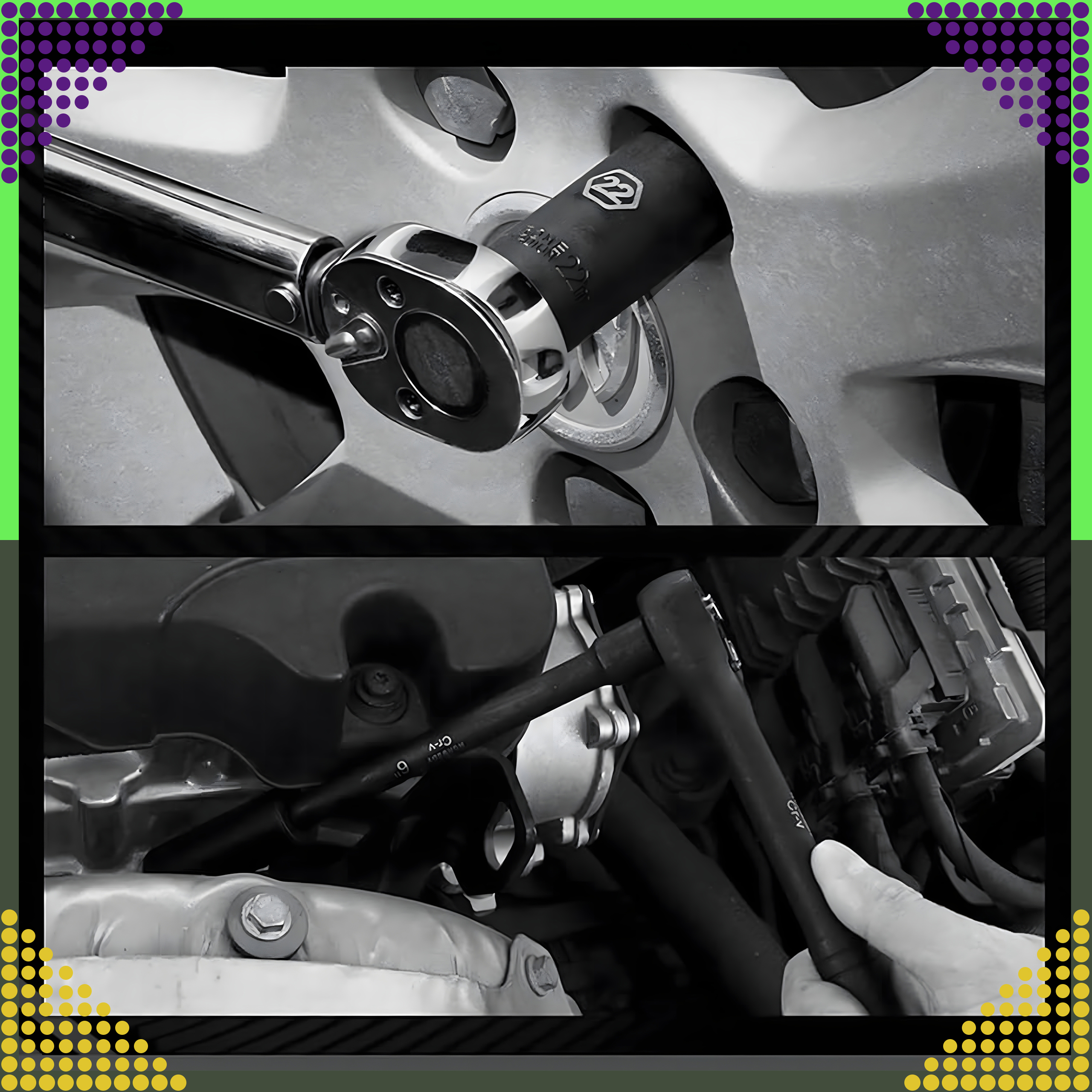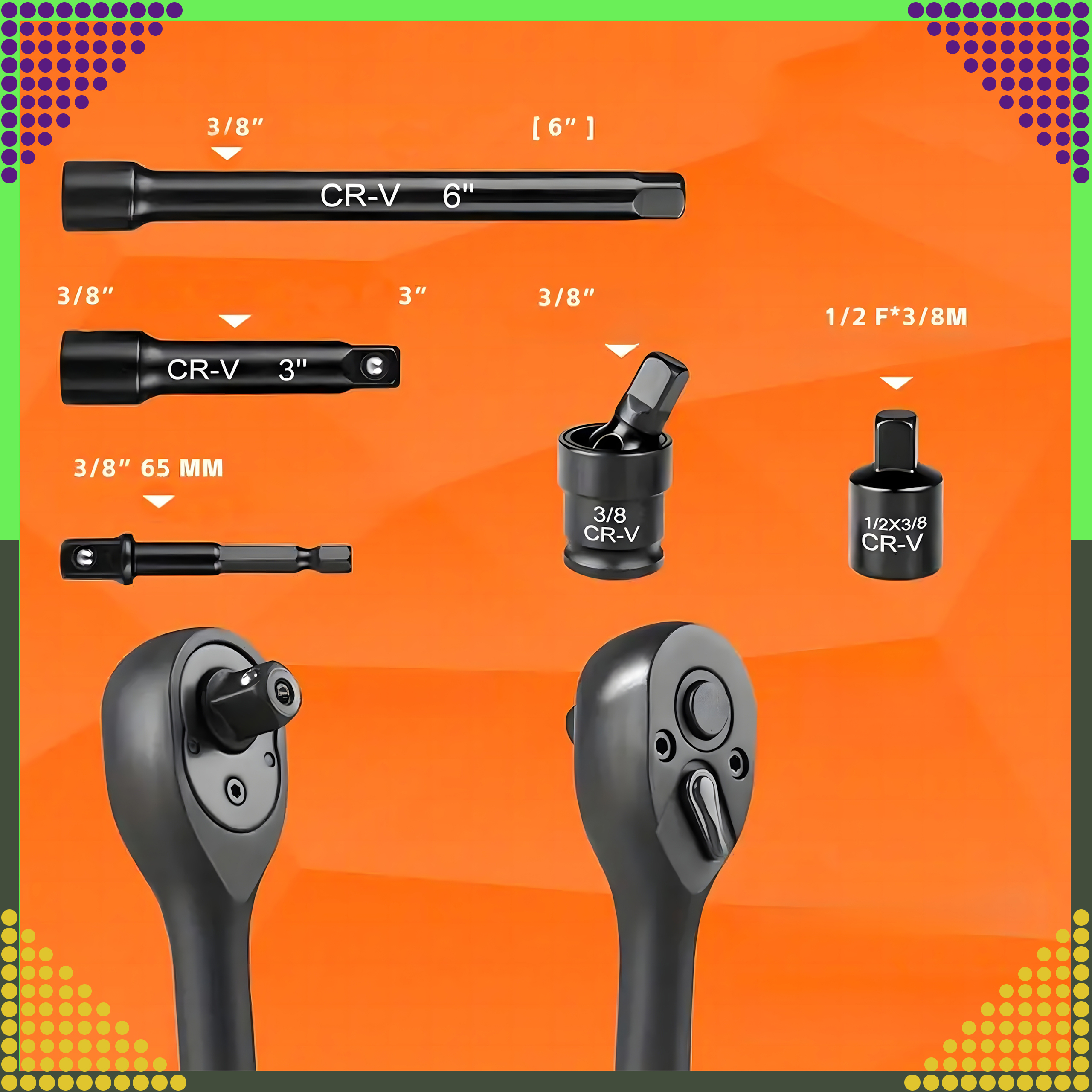 ✔️ Uchwyt z grzechotką 3/8 cala: Ergonomiczna rękojeść zapewnia komfort pracy, a precyzyjny mechanizm grzechotki ułatwia szybkie dokręcanie i odkręcanie śrub.