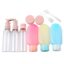 10-częściowy zestaw buteleczek i pojemniczków, specjalnie zaprojektowanych do przewożenia kosmetyków w podróży.