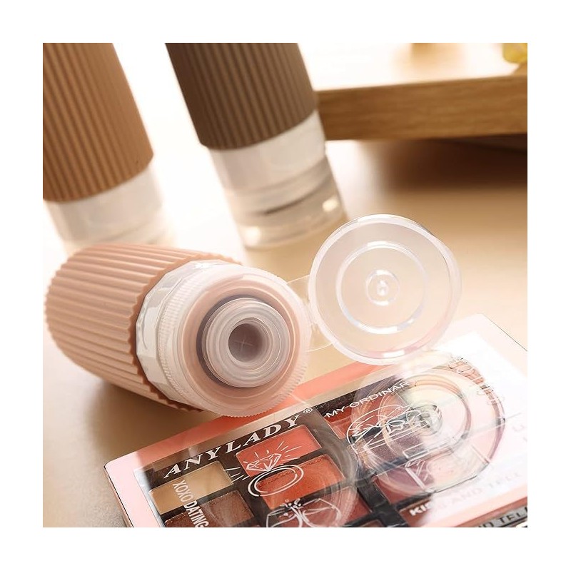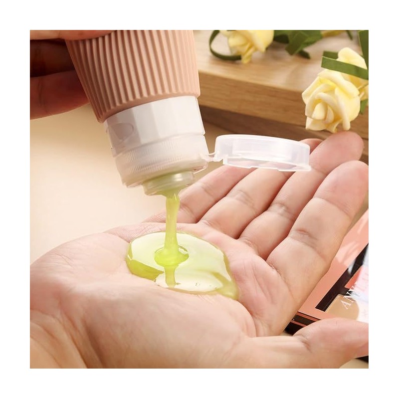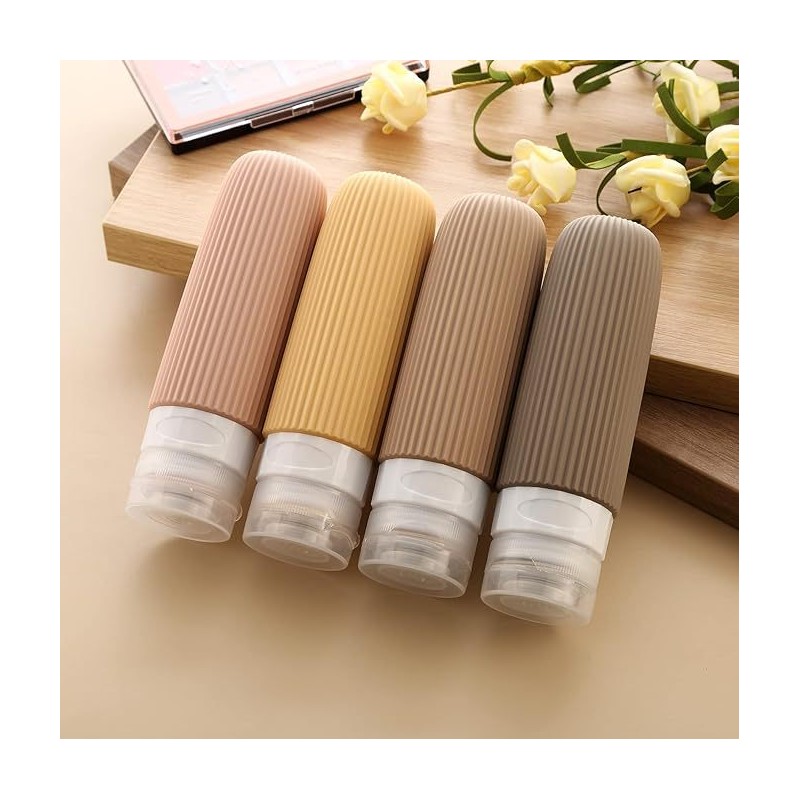 4-częściowy zestaw silikonowych buteleczek, specjalnie zaprojektowanych do przewożenia kosmetyków w podróży.