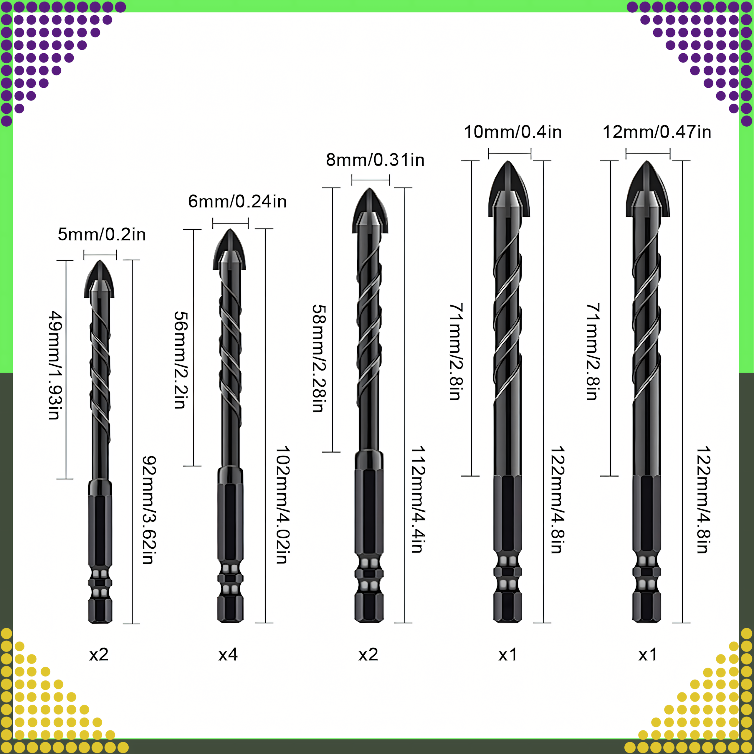 Zestaw Uniwersalnych Wierteł do Kamienia Szkła Płytek Drewna 10 szt 5-12 mm