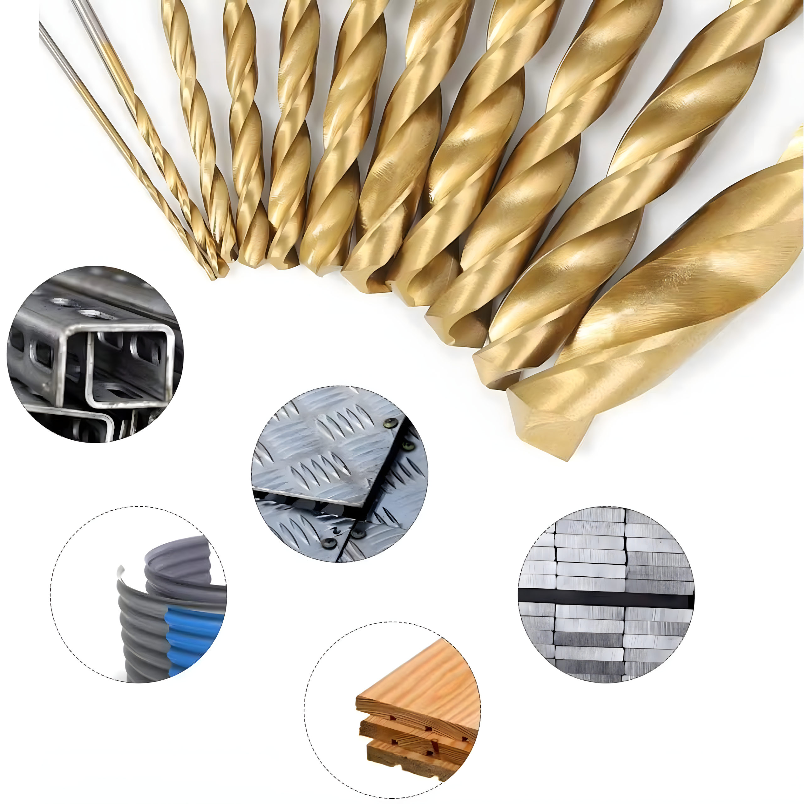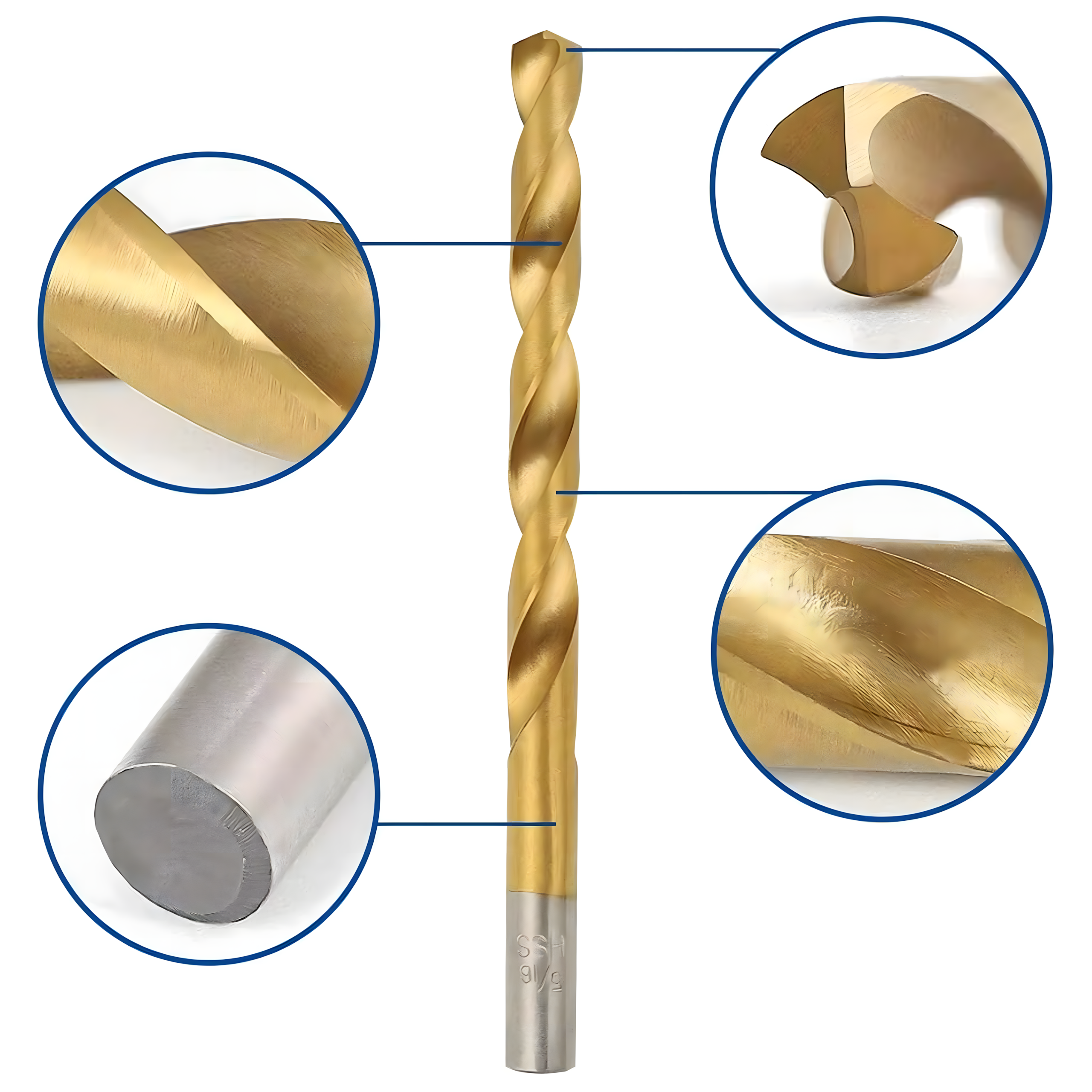 ✔️ Wyjątkowa trwałość – powłoka tytanowa zwiększa odporność na wysokie temperatury i zużycie, co sprawia, że wiertła służą przez długi czas.