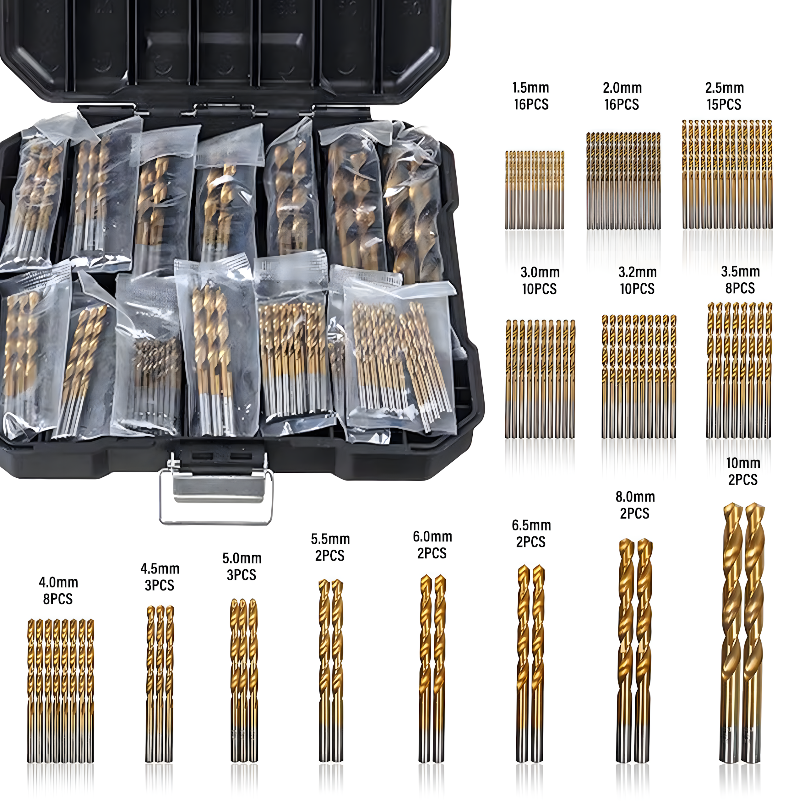 👉 Zestaw Wierteł Uniwersalnych do Metalu i Drewna – Wiertła Tytanowe 1,5-10 mm, 99 Elementów!